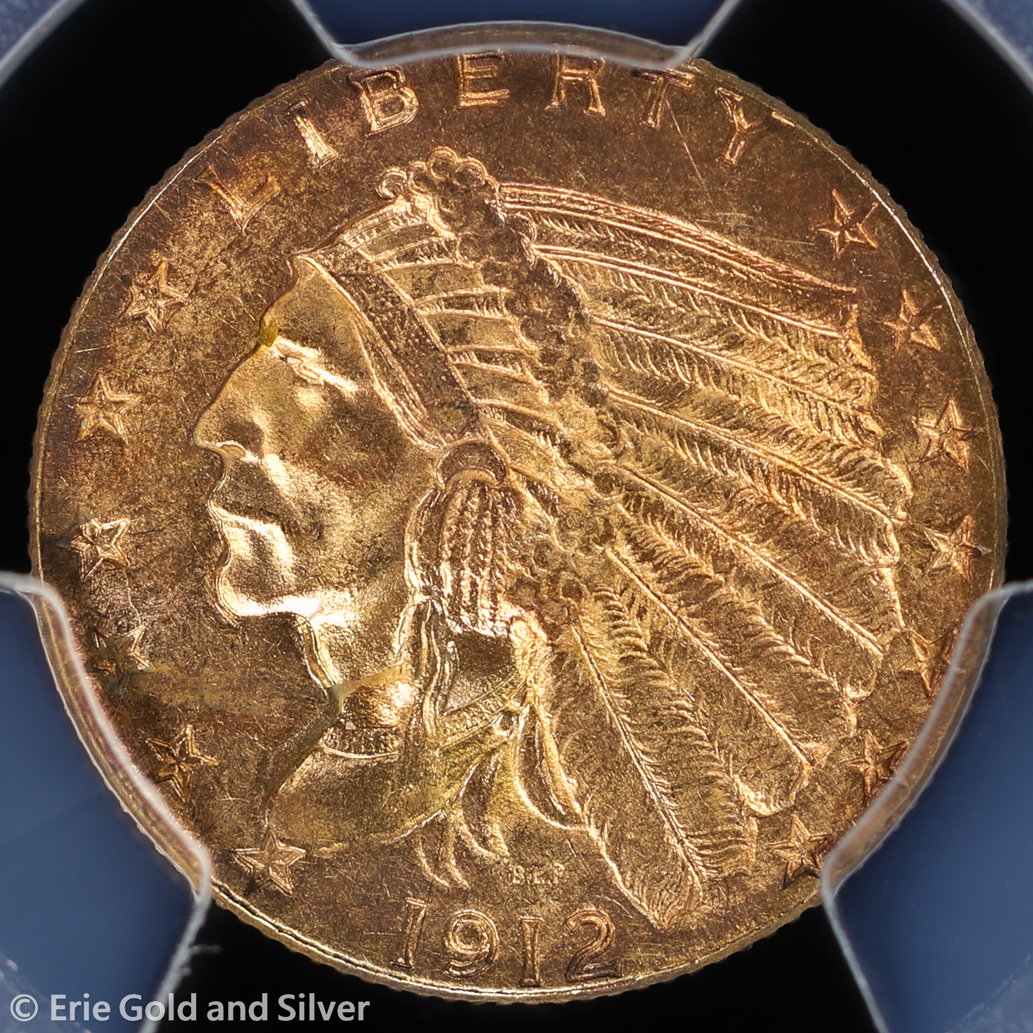 1912 $2.50 Gold Indian Head Quarter Eagle PCGS AU 58