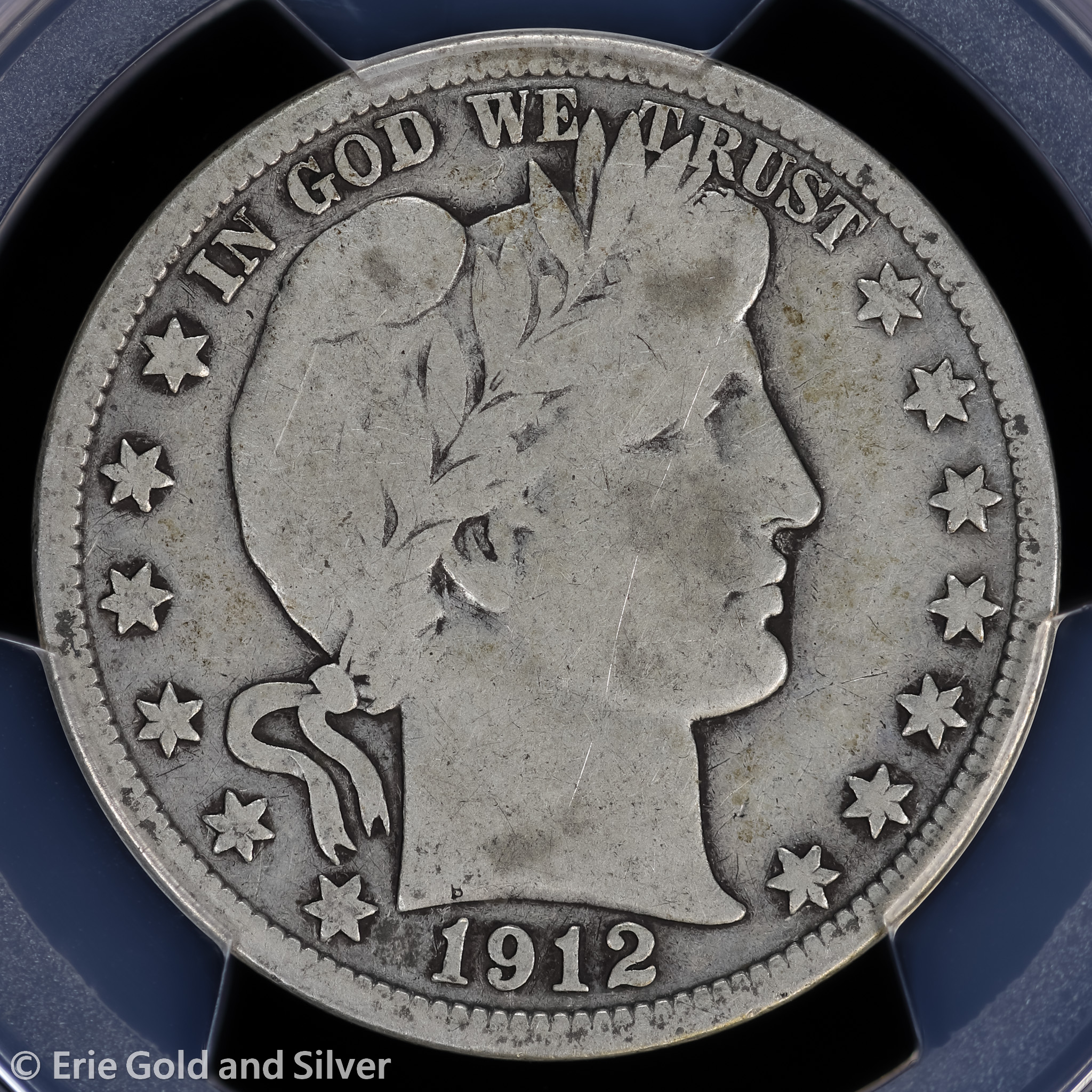 For sale is a 1912 Barber Half Dollar. Certified / graded by PCGS at VG 08.