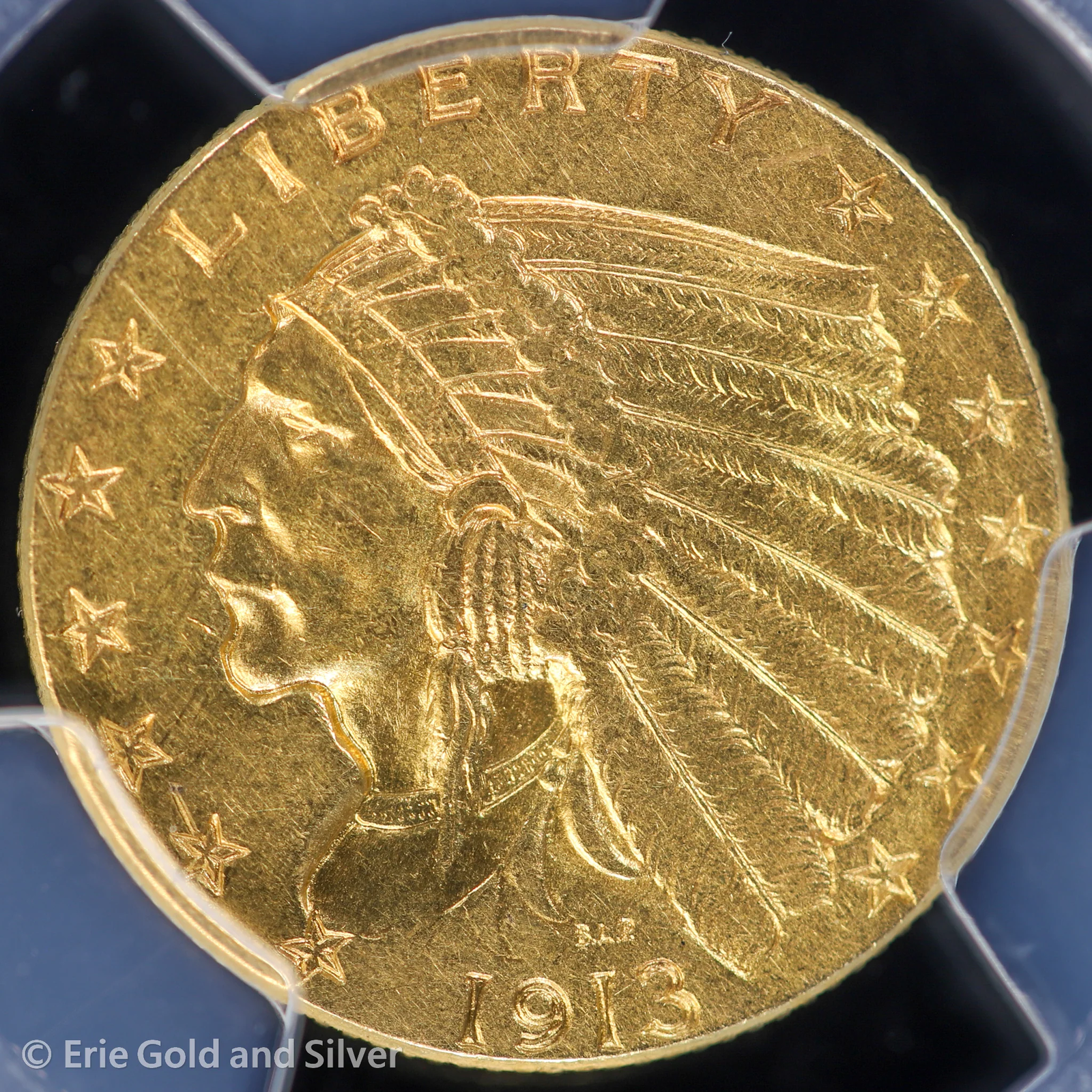 1913 $2.50 Gold Indian Head Quarter Eagle PCGS AU 58