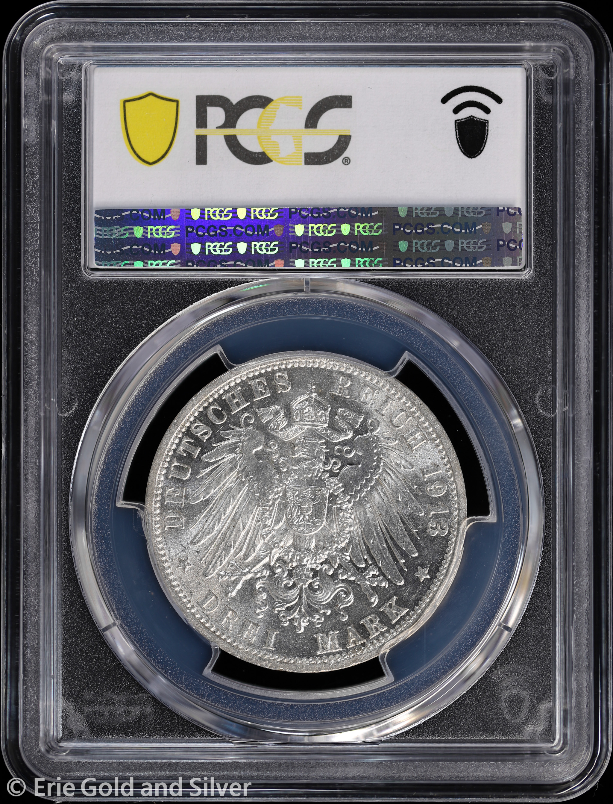 1913-A Prussia William II 25th Anniversary Silver 3 Marks PCGS MS 61 | J-112