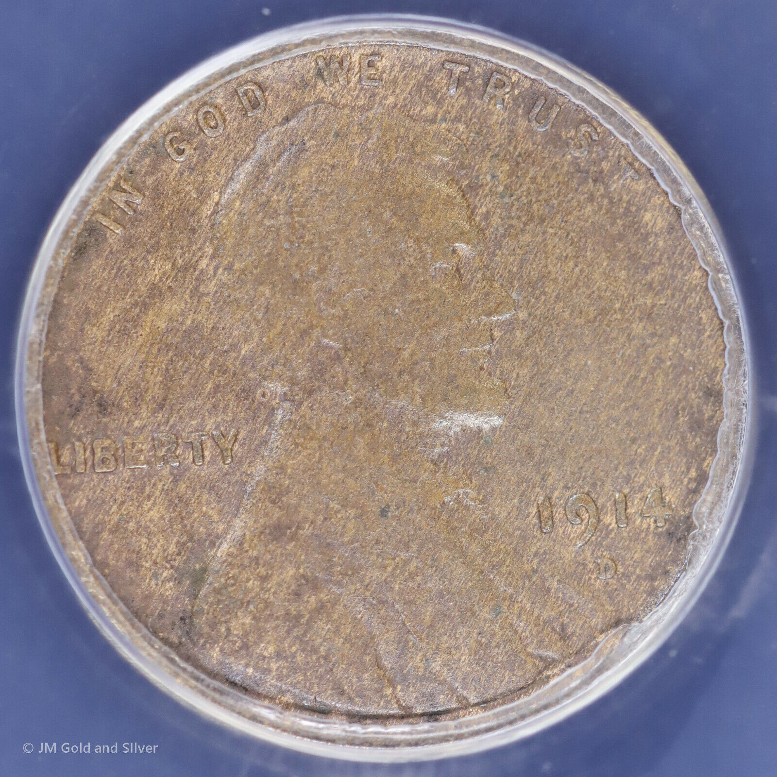 1914 D 1c Lincoln Wheat Cent ANACS F 15 Details