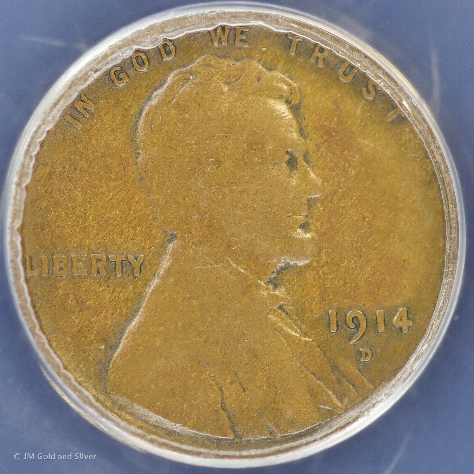 1914 D 1c Lincoln Wheat Cent ANACS VG 10 Details