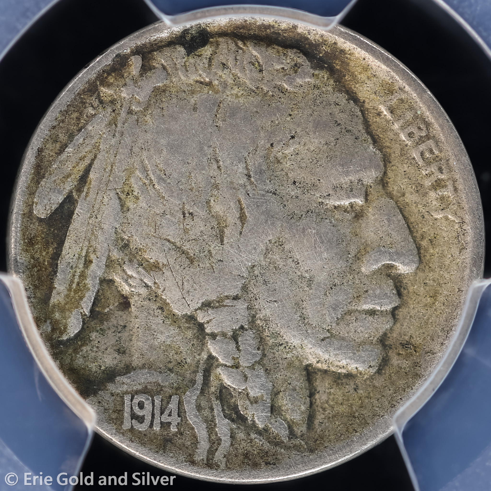 For sale is a 1914-D Buffalo Nickel. Certified / graded by PCGS at Genuine VF Detail.