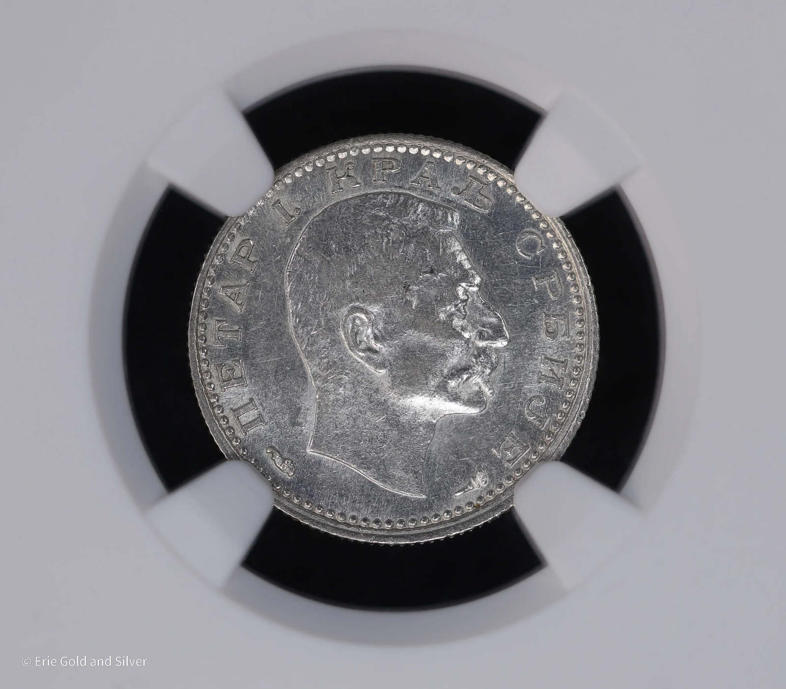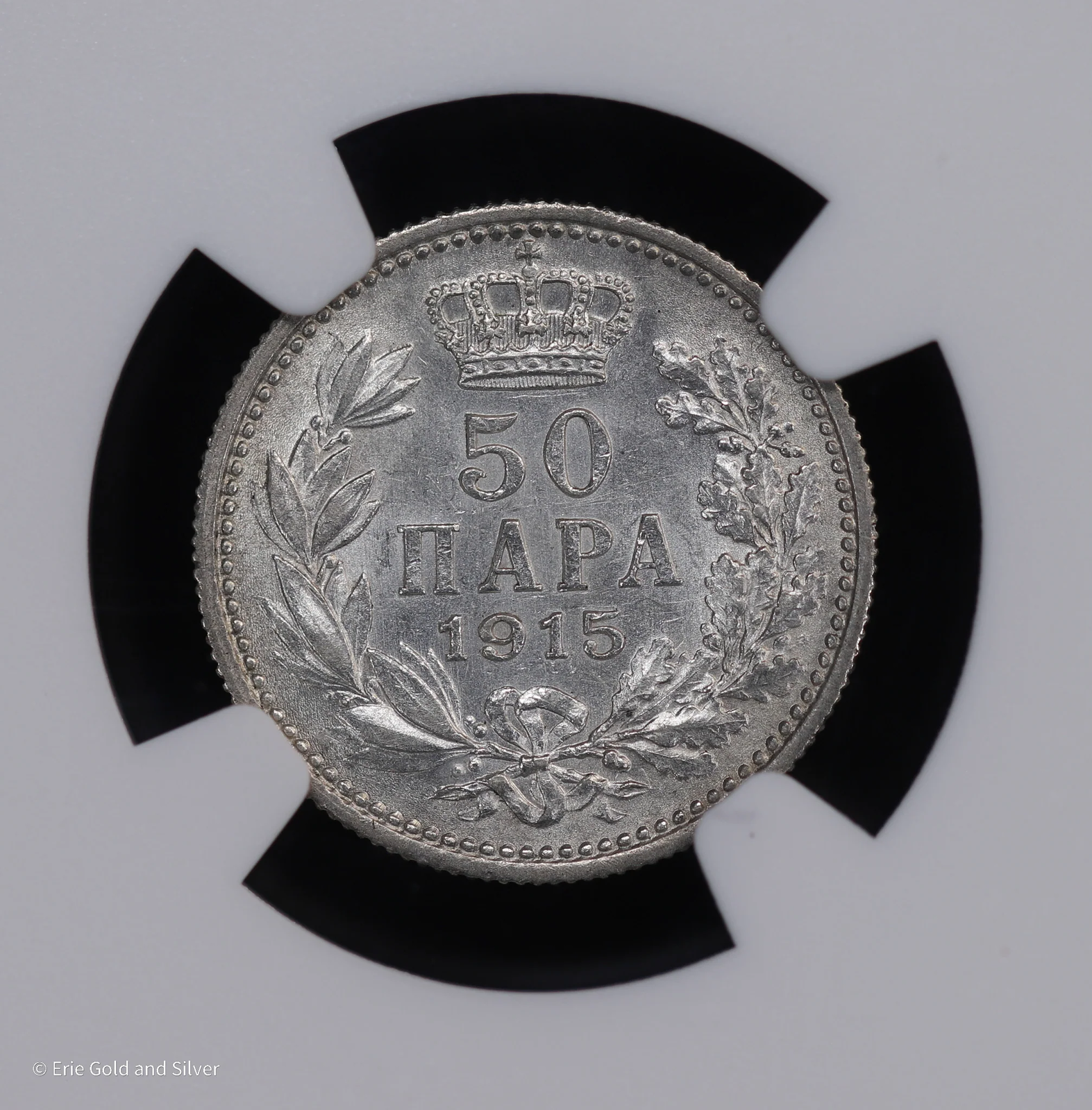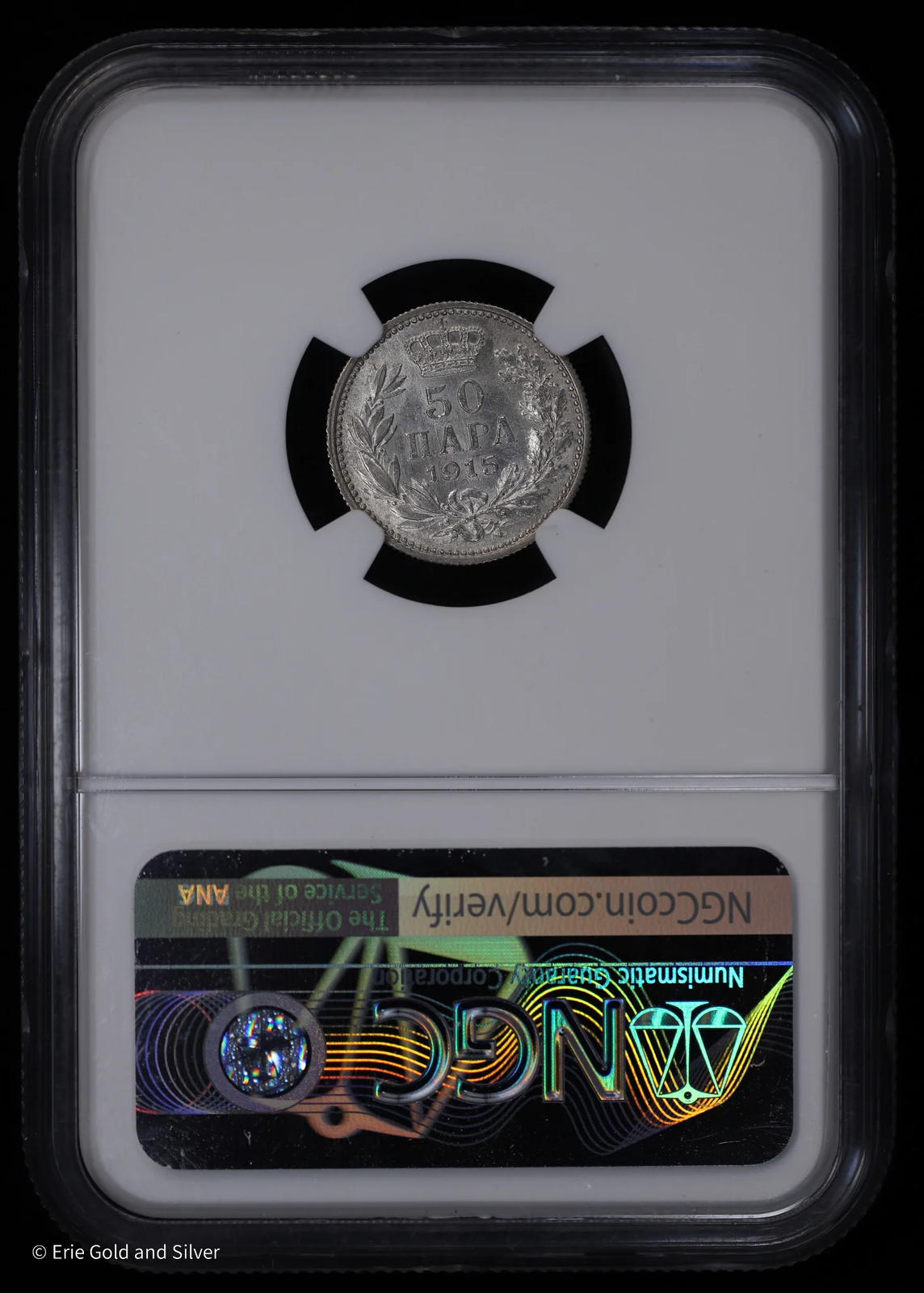 1915 50P Serbia Silver 50 Para Coin Alignment NGC AU 58