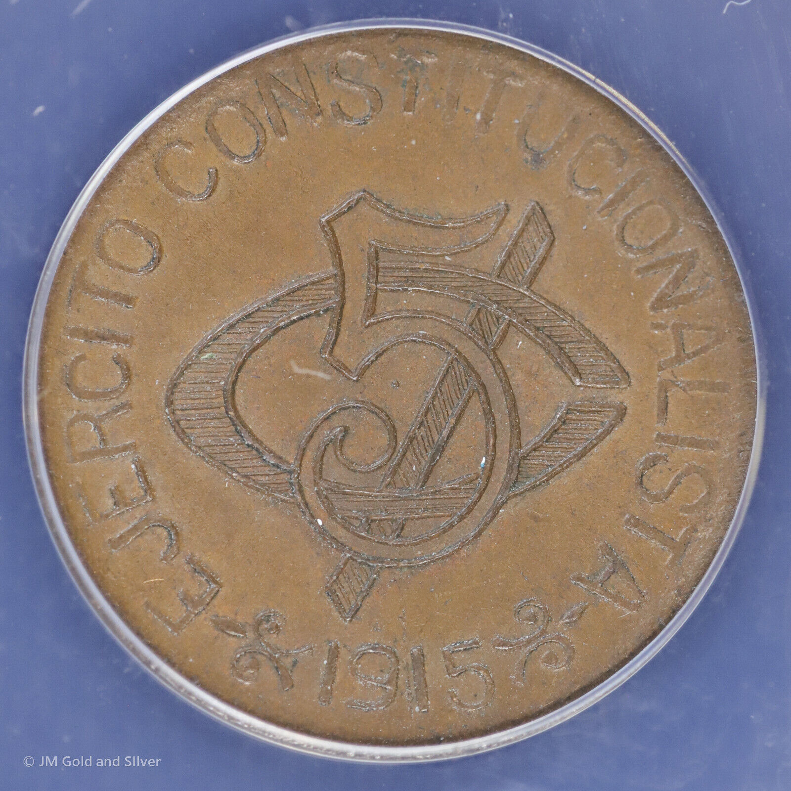 1915 5C Mexico Chihuahua Revolutionary 5 Centavos ANACS MS 61 BRN | Copper UNC