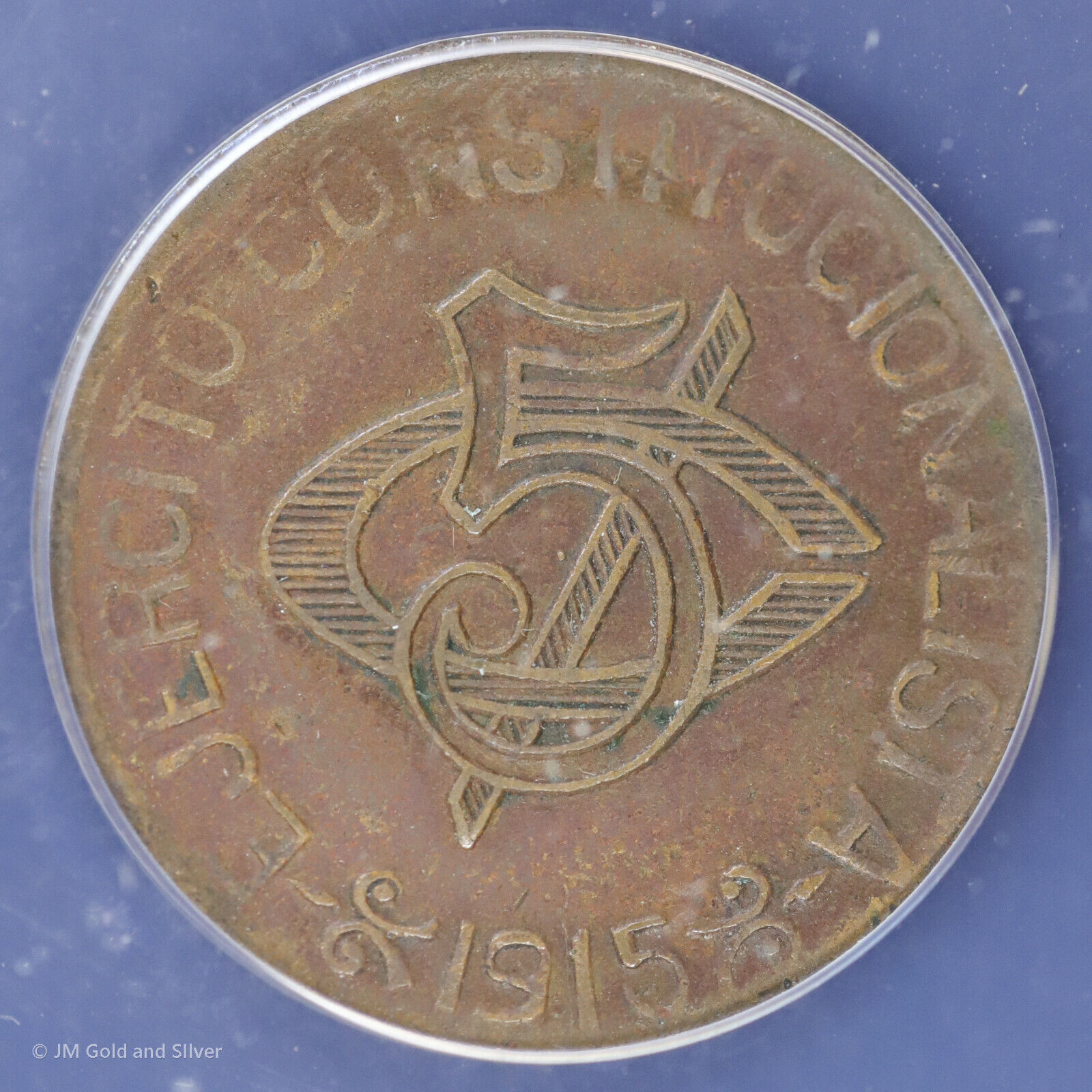 1915 5C Mexico Chihuahua Revolutionary 5 Centavos ANACS VF 30 | Copper