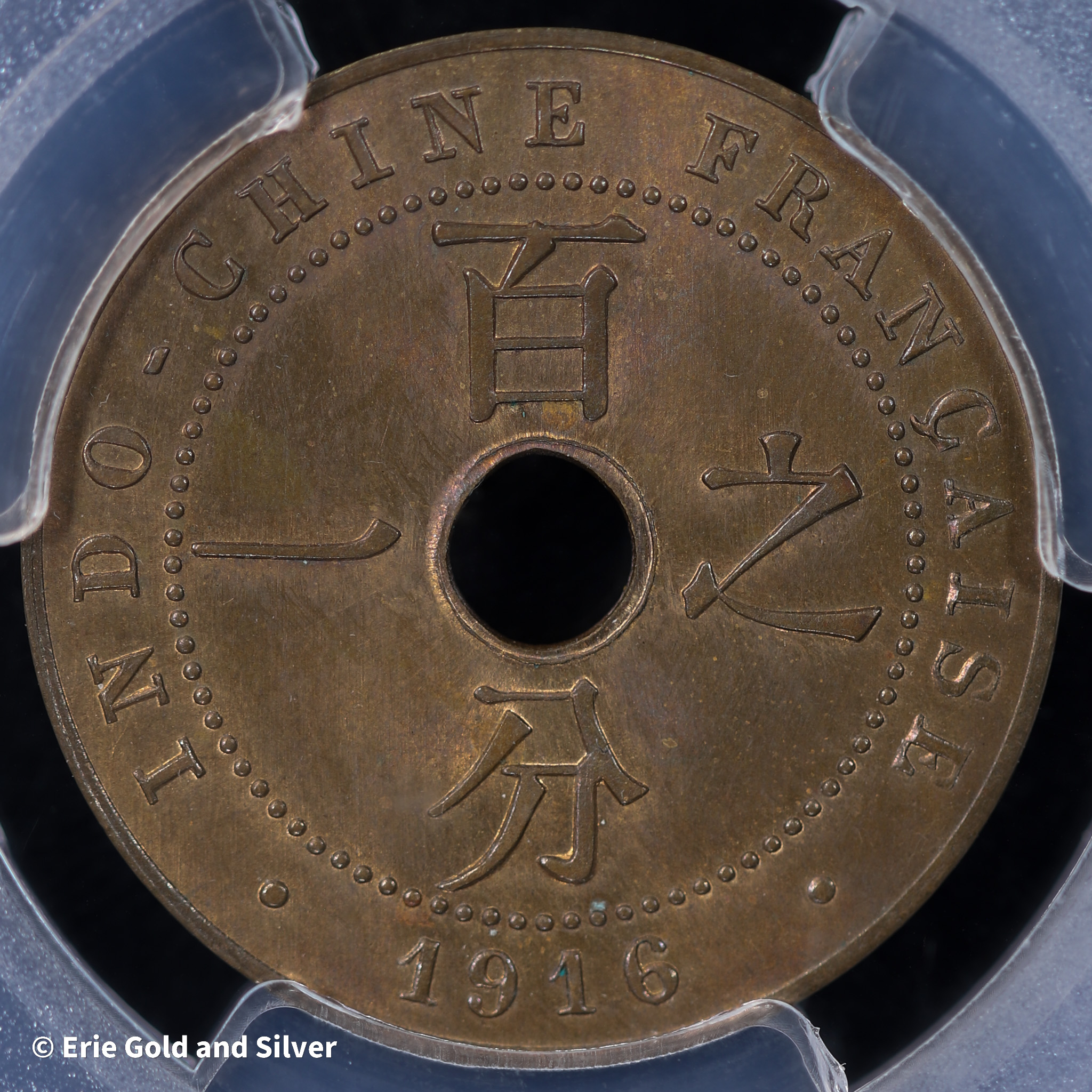 1916-A French Indochina Cent PCGS MS 65 RB | Lec-76, Pop 2 / Only 1 higher!