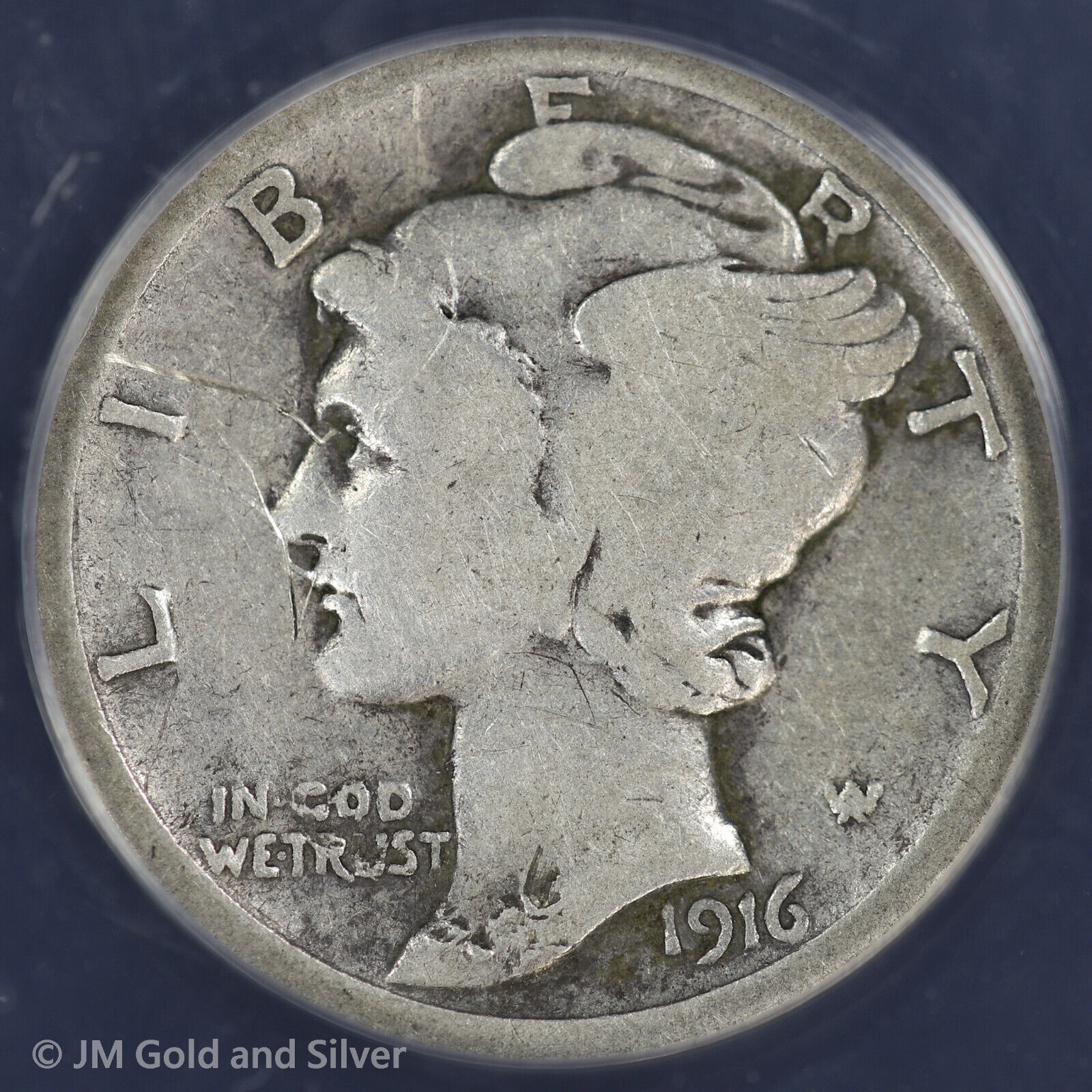 1916-D 10C Mercury Dime ANACS VG 8 Details | Very Good