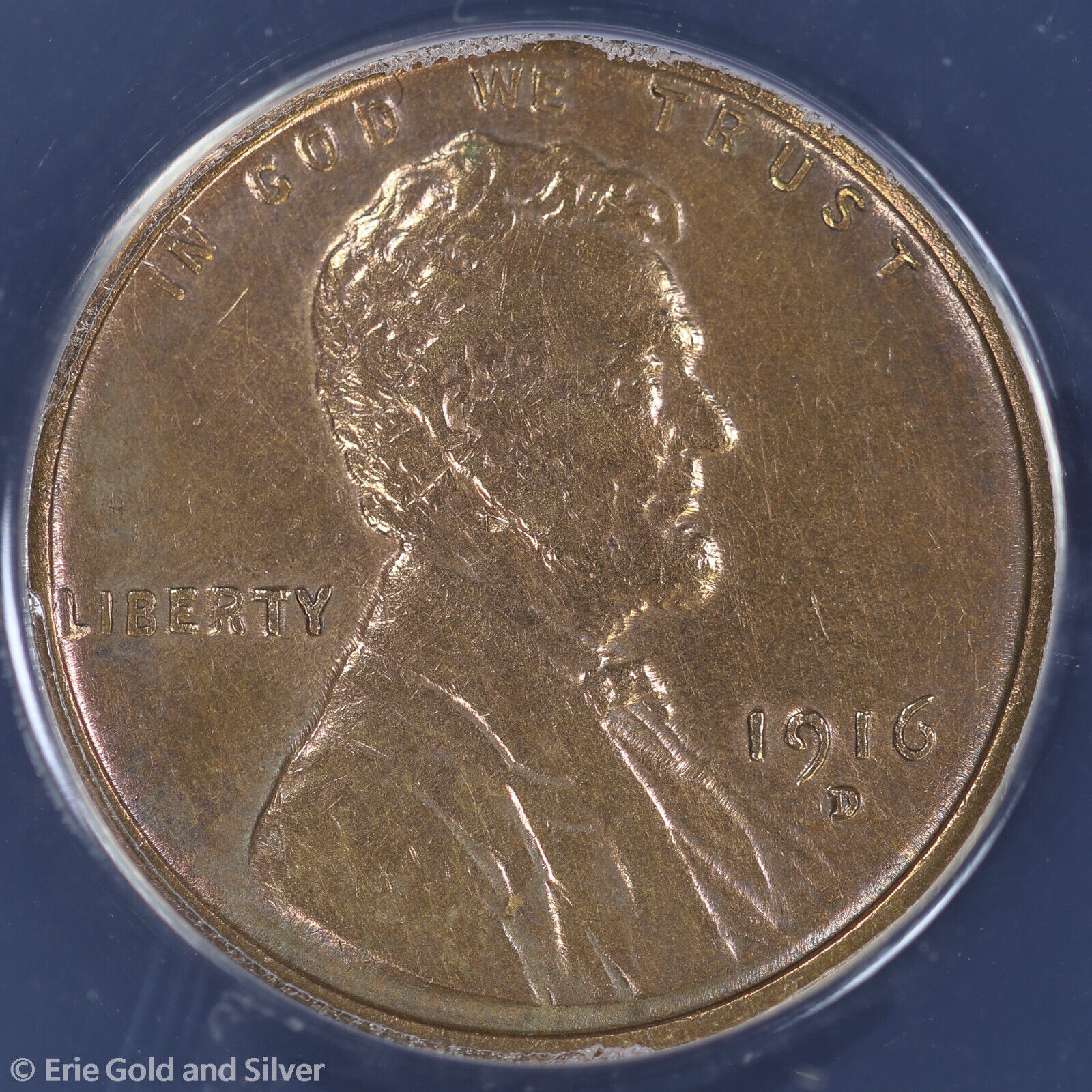 1916-D 1c Lincoln Wheat Cent ANACS AU 50 Details