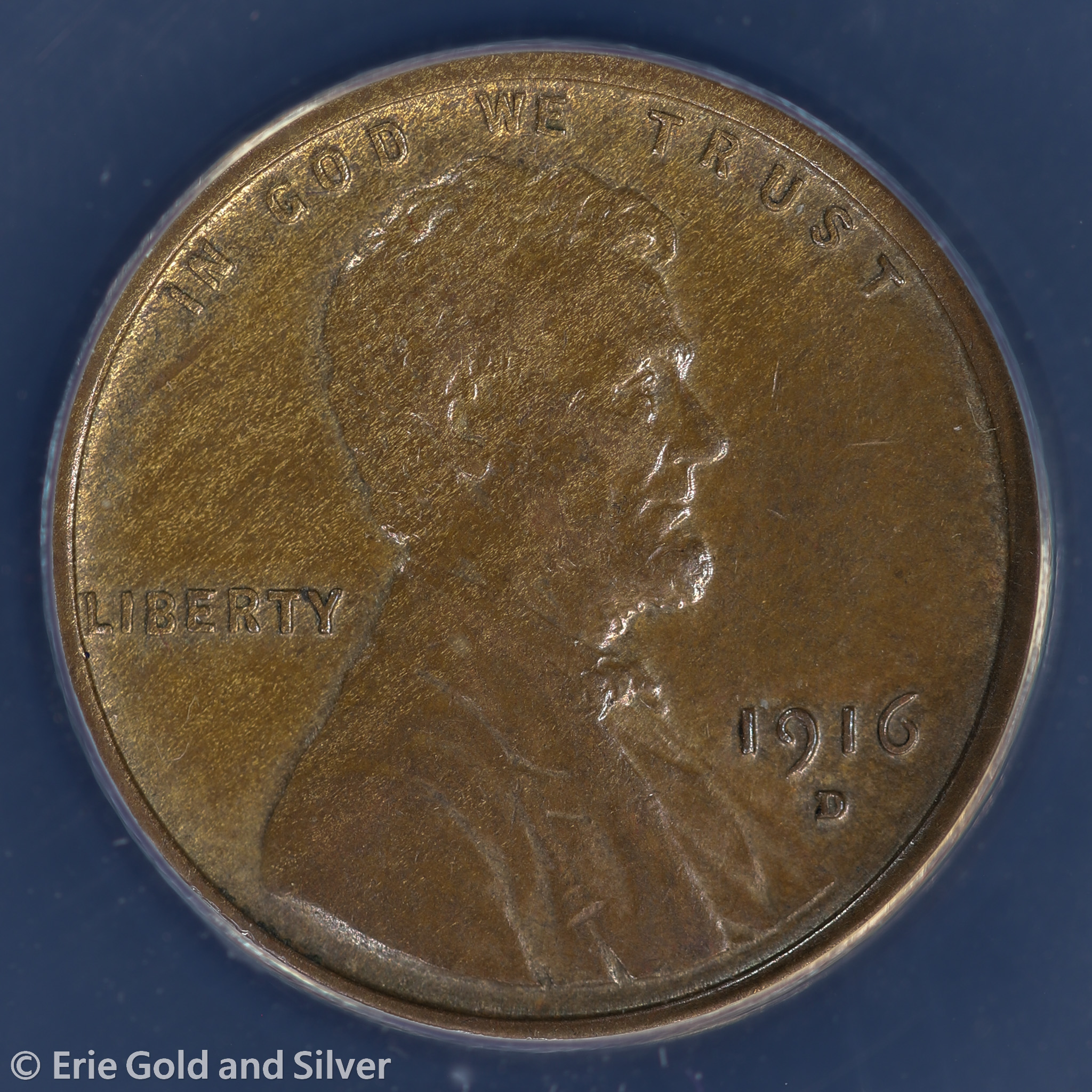 For sale is a 1916-D Lincoln Wheat Cent. Certified / graded by ANACS at AU 58.