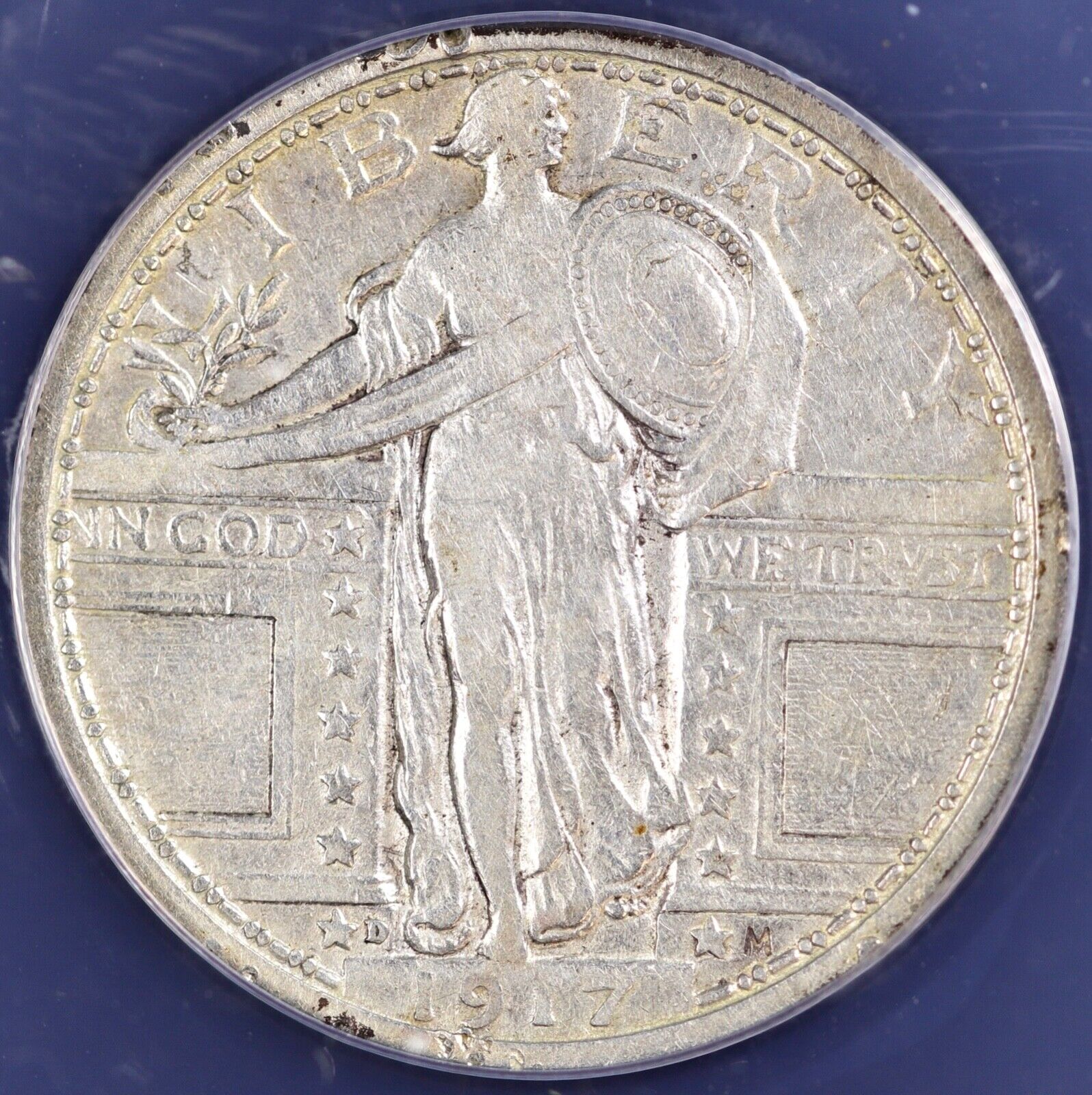 1917 D Standing Liberty Quarter SLQ 25c ANACS VF 25 Details Var 1 (Very Fine)