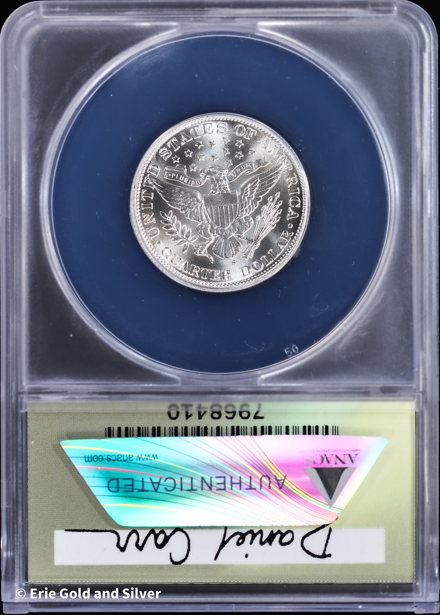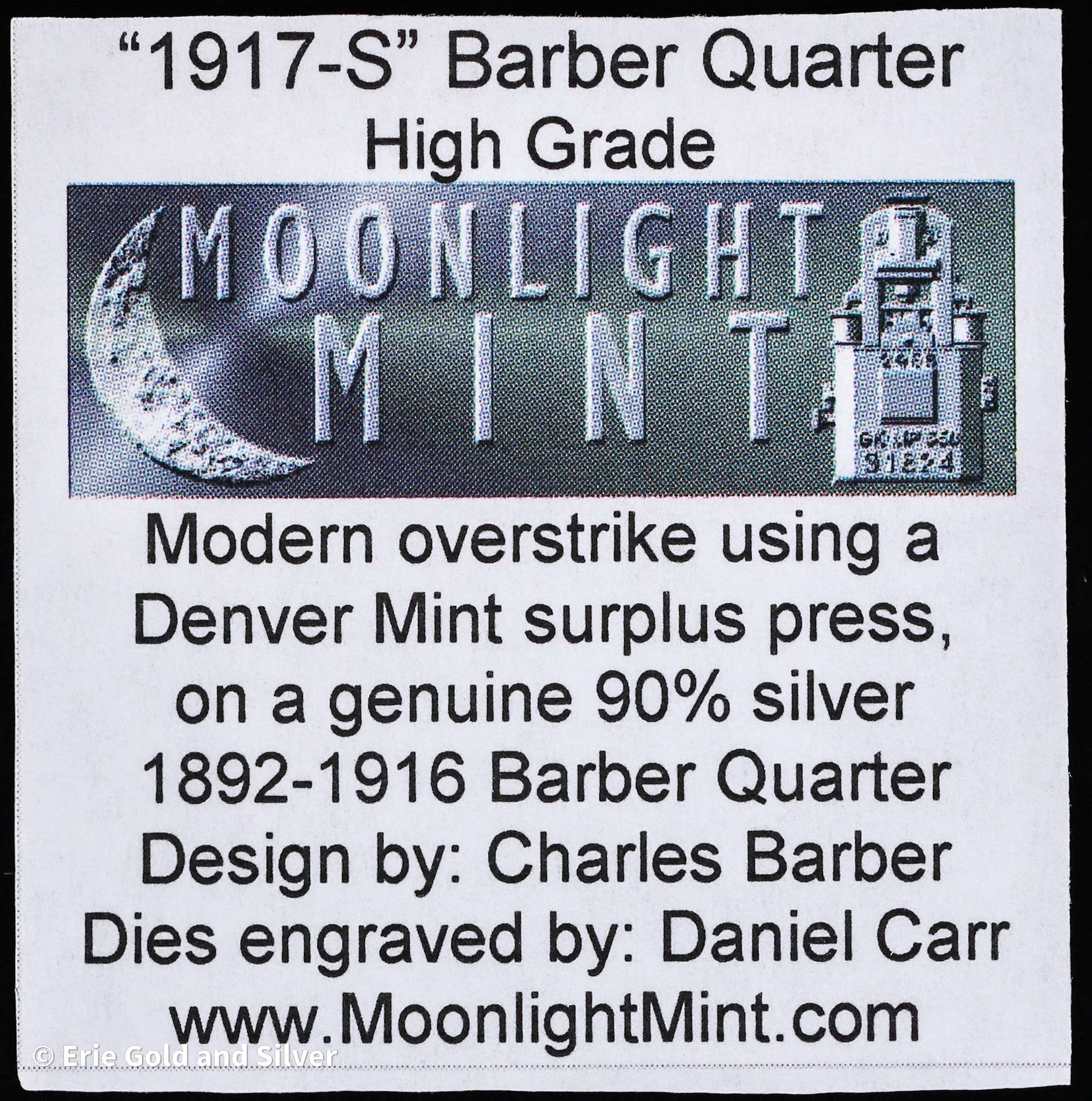 1917-S 25C Dan Carr Moonlight Mint Barber Quarter O/S Token ANACS MS 69