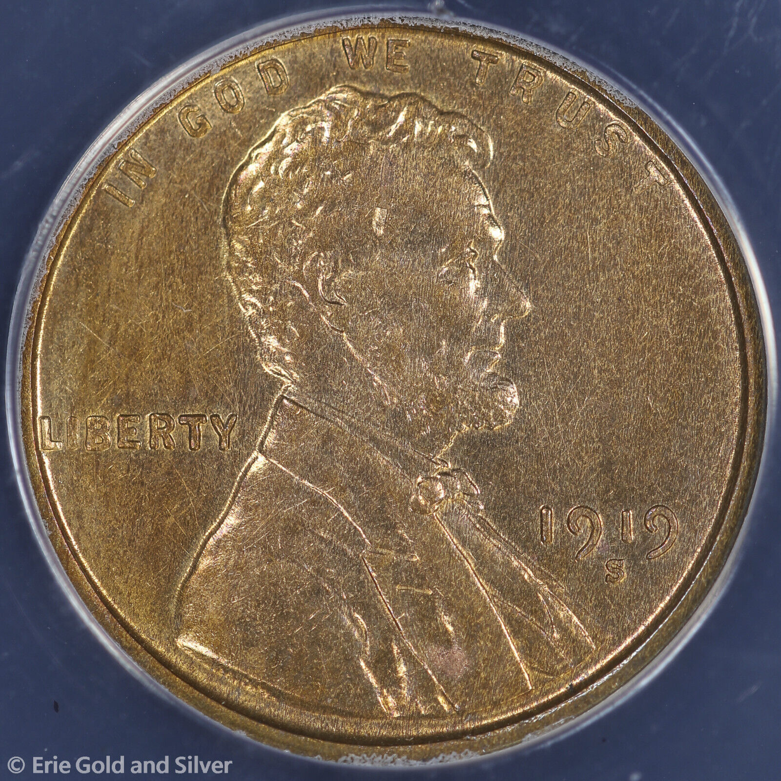 1919-S 1c Lincoln Wheat Cent ANACS AU 58 Details