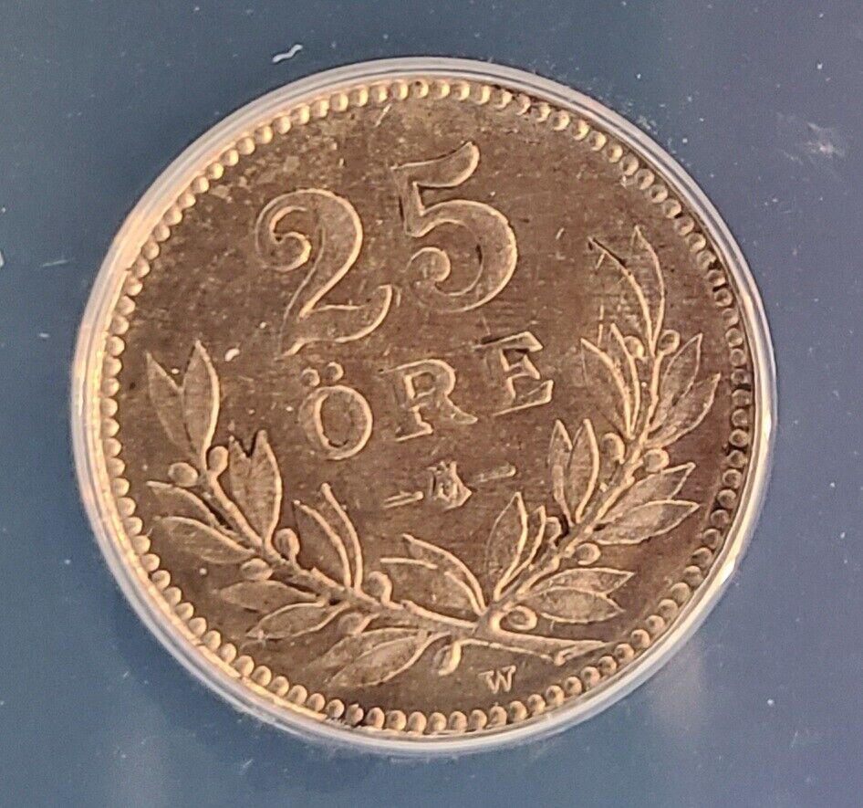 1919-W Sweden Silver Gustaf V 25 Ore Coin ANACS MS 64 KM#785