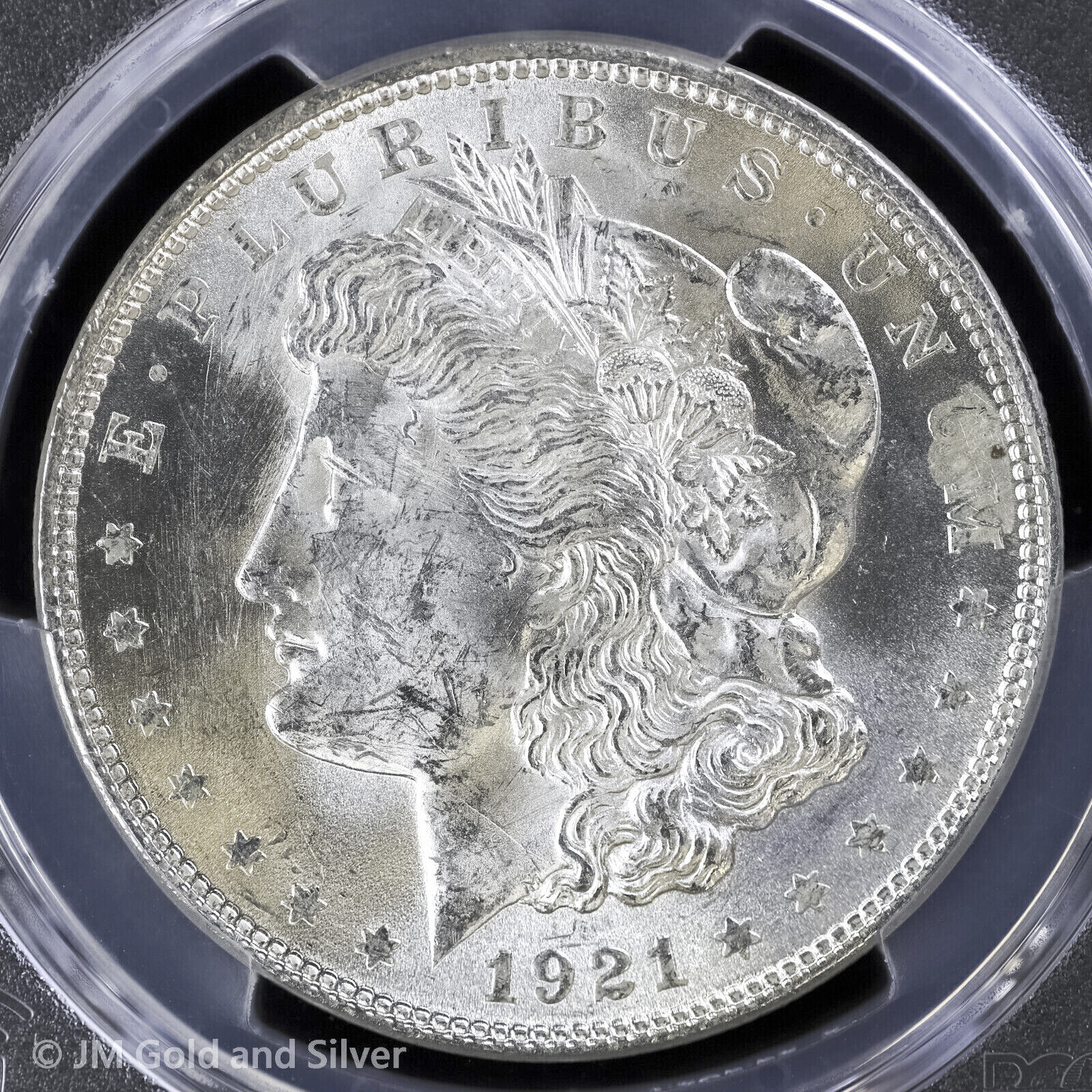 1921-P $1 Morgan Silver Dollar PCGS MS 63 | Error Struck Through Obverse UNC