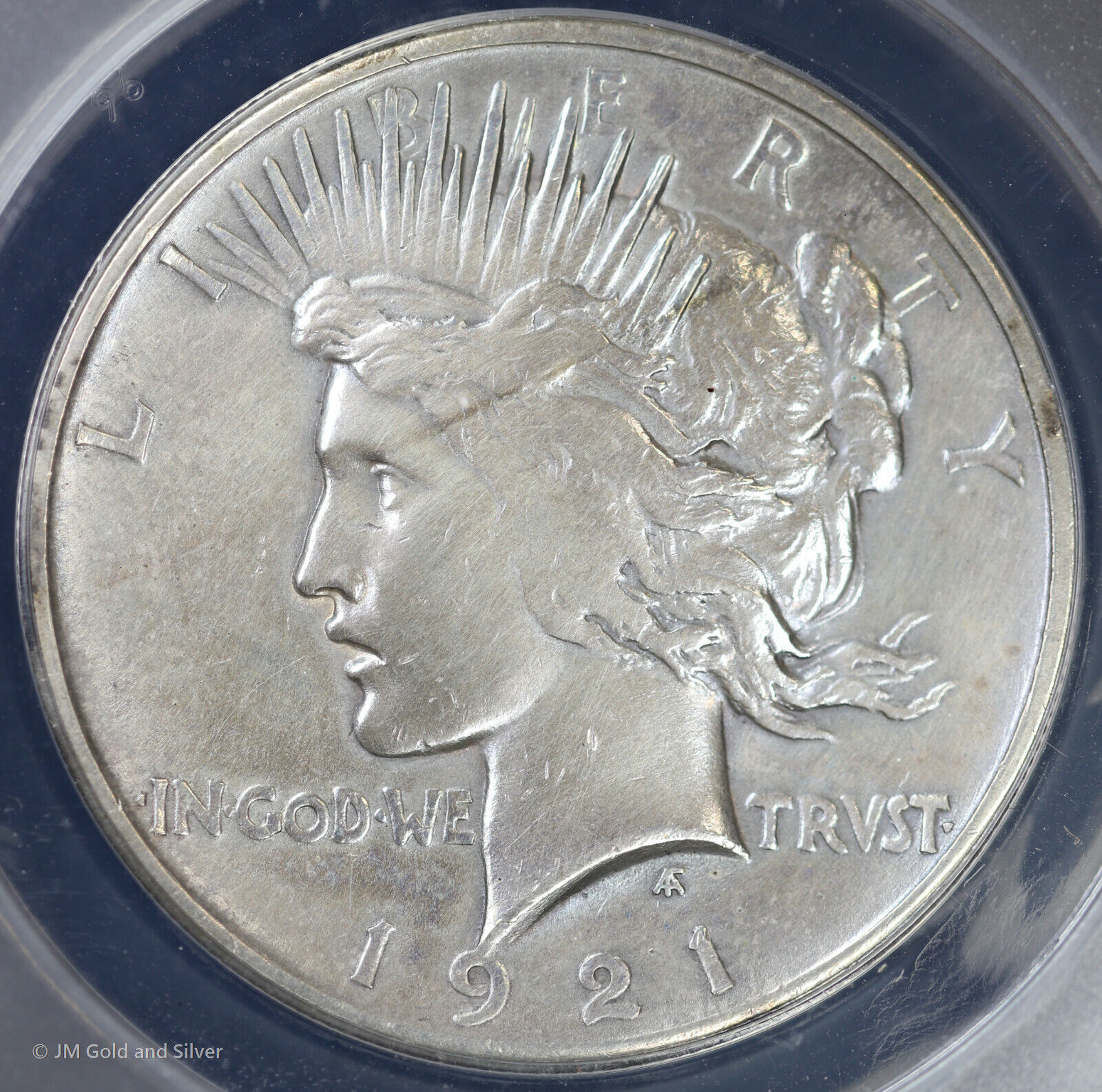 1921-P $1 Peace Silver Dollar ANACS AU 55 Details | High Relief
