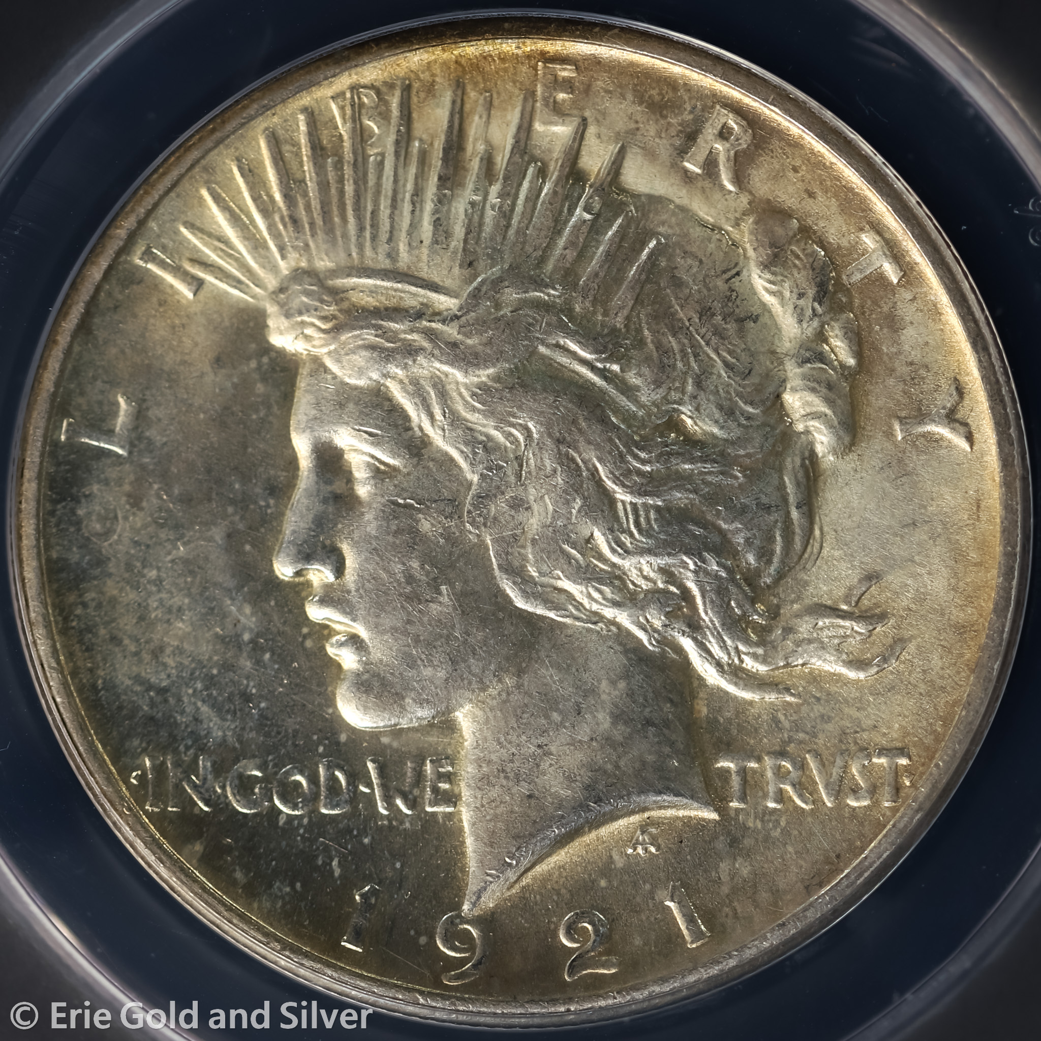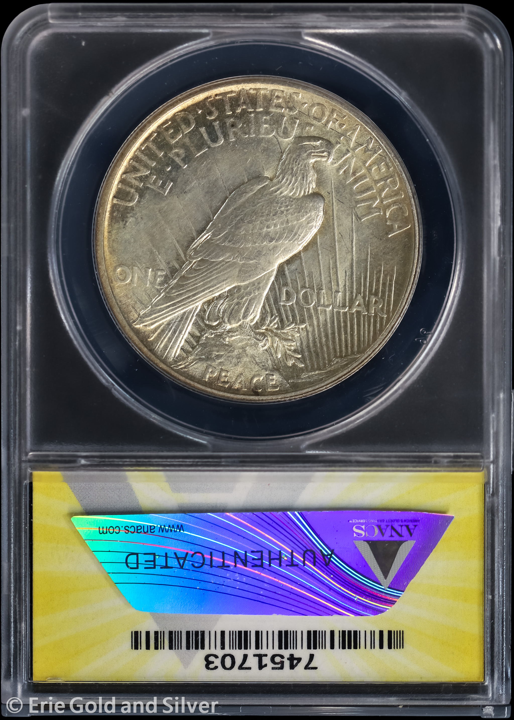 For sale is a 1921-P Peace Silver Dollar. Certified / graded by ANACS at MS 60.