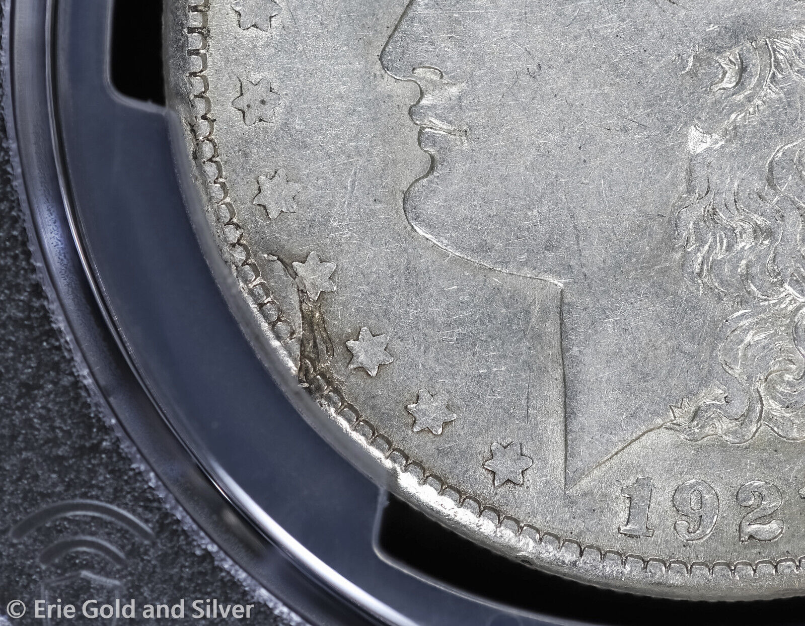 1921-S $1 Morgan Silver Dollar PCGS AU 55 | Error: Obverse Lamination