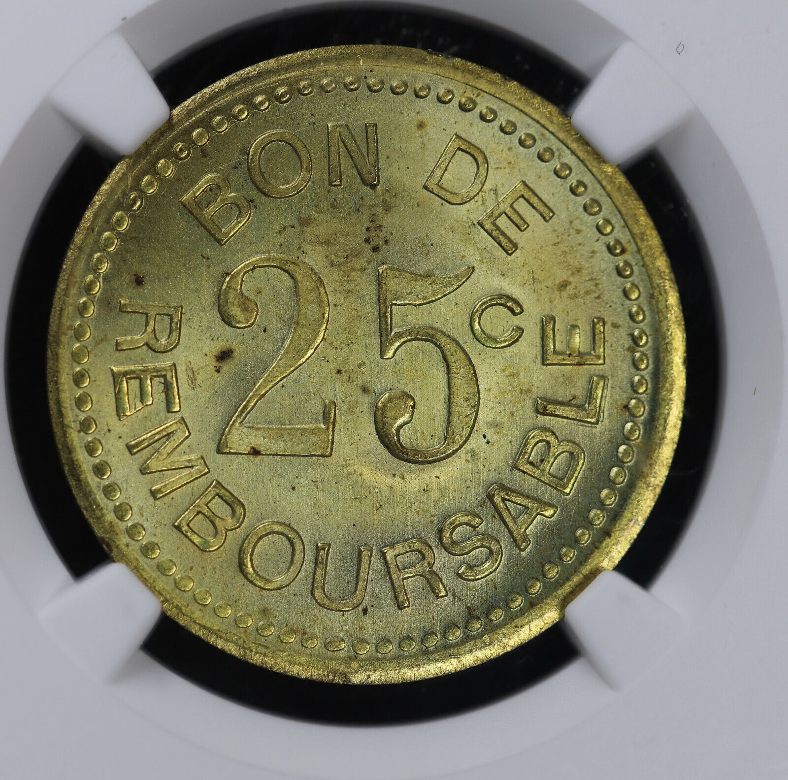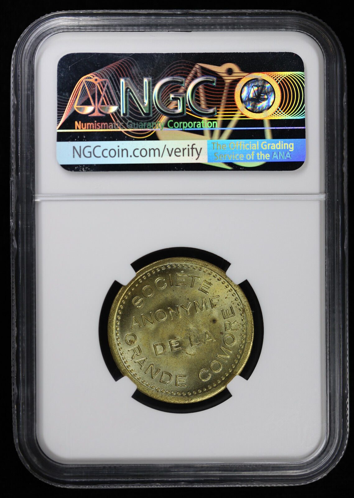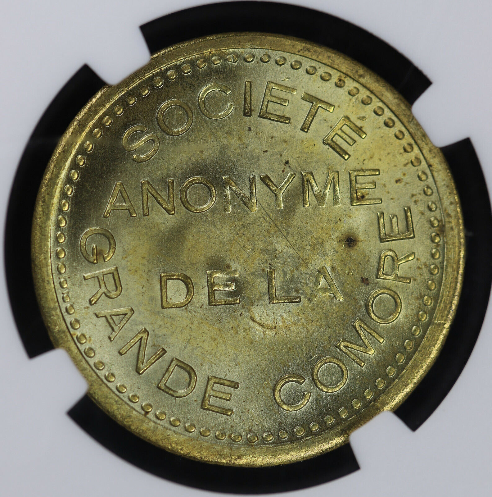 (1922) 25C Comoros Société Anonyme Brass 25 Centimes NGC MS 64 | KM-TN1A