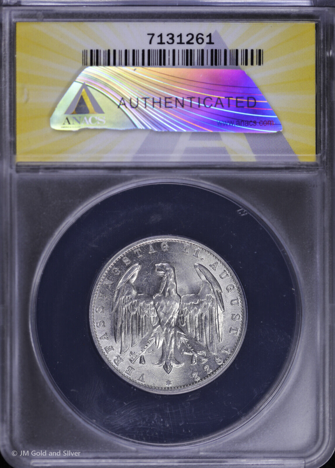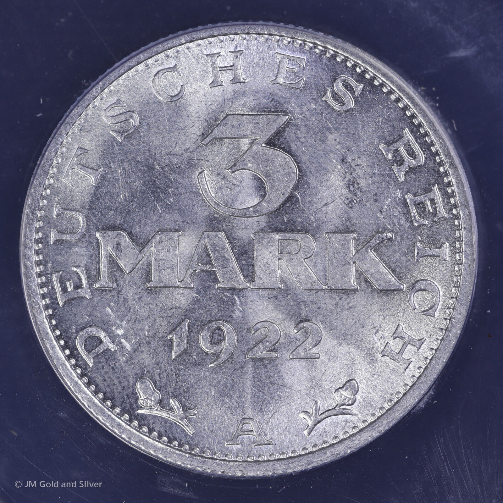1922 A 3M Germany 3 Marks ANACS MS 63 | Uncirculated UNC