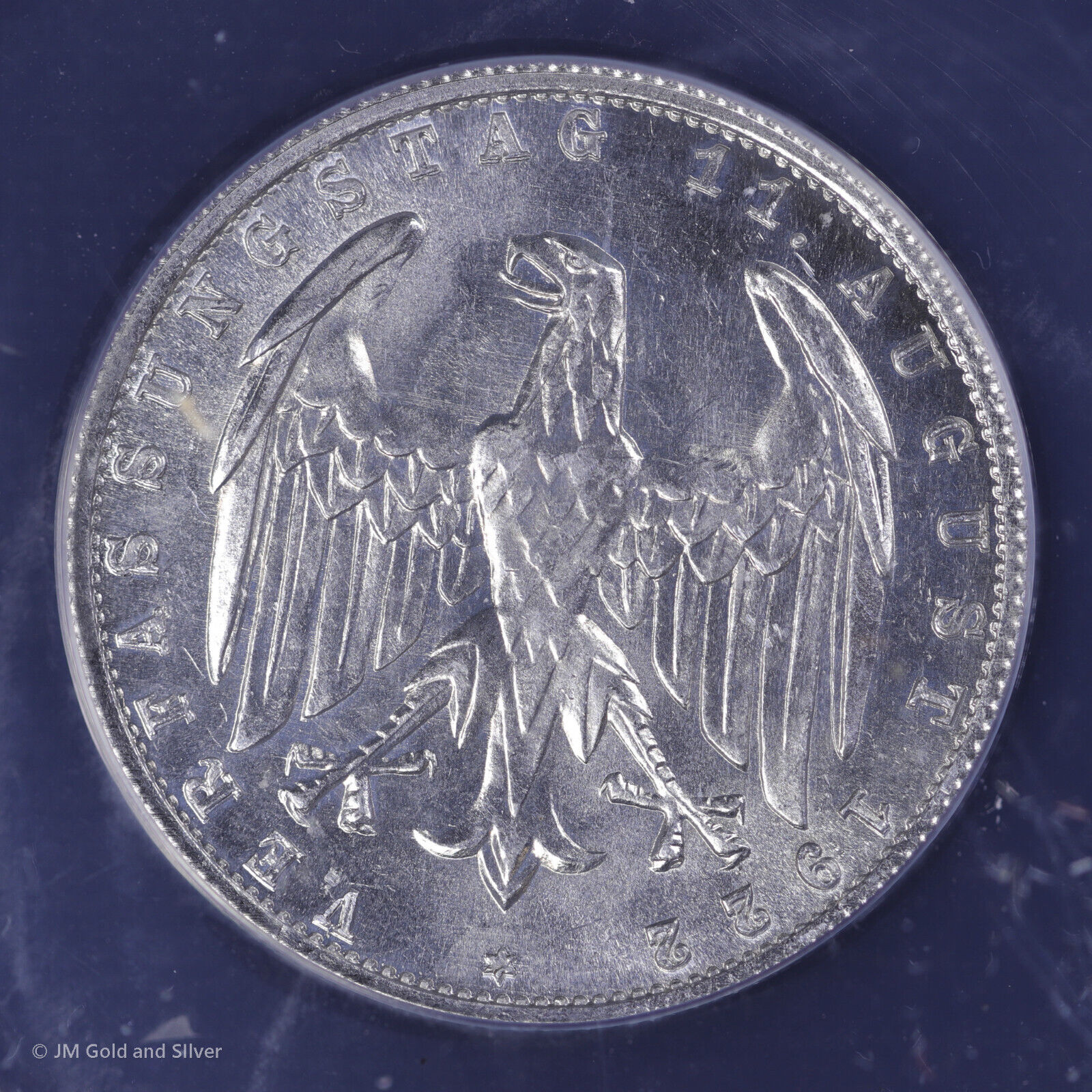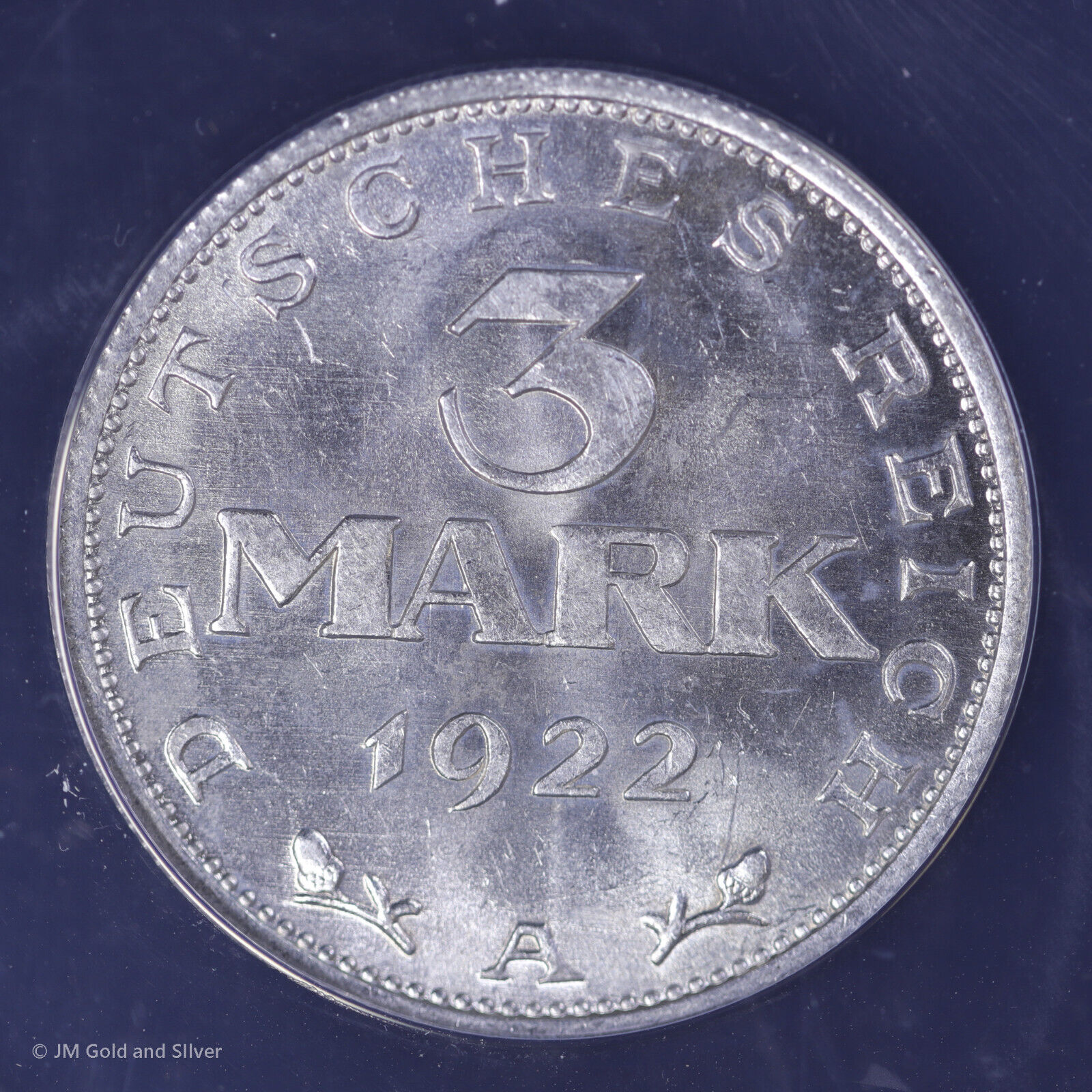 1922 A 3M Germany 3 Marks ANACS MS 64 | Uncirculated UNC BU