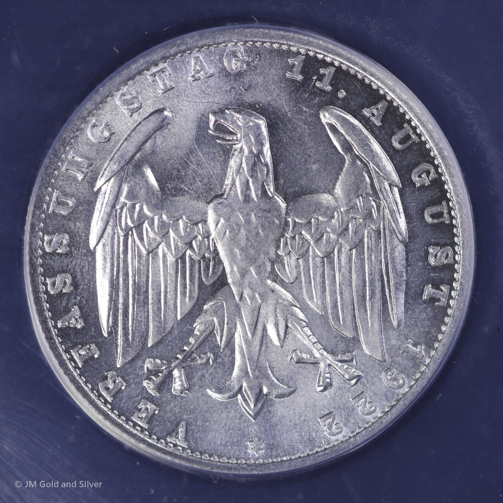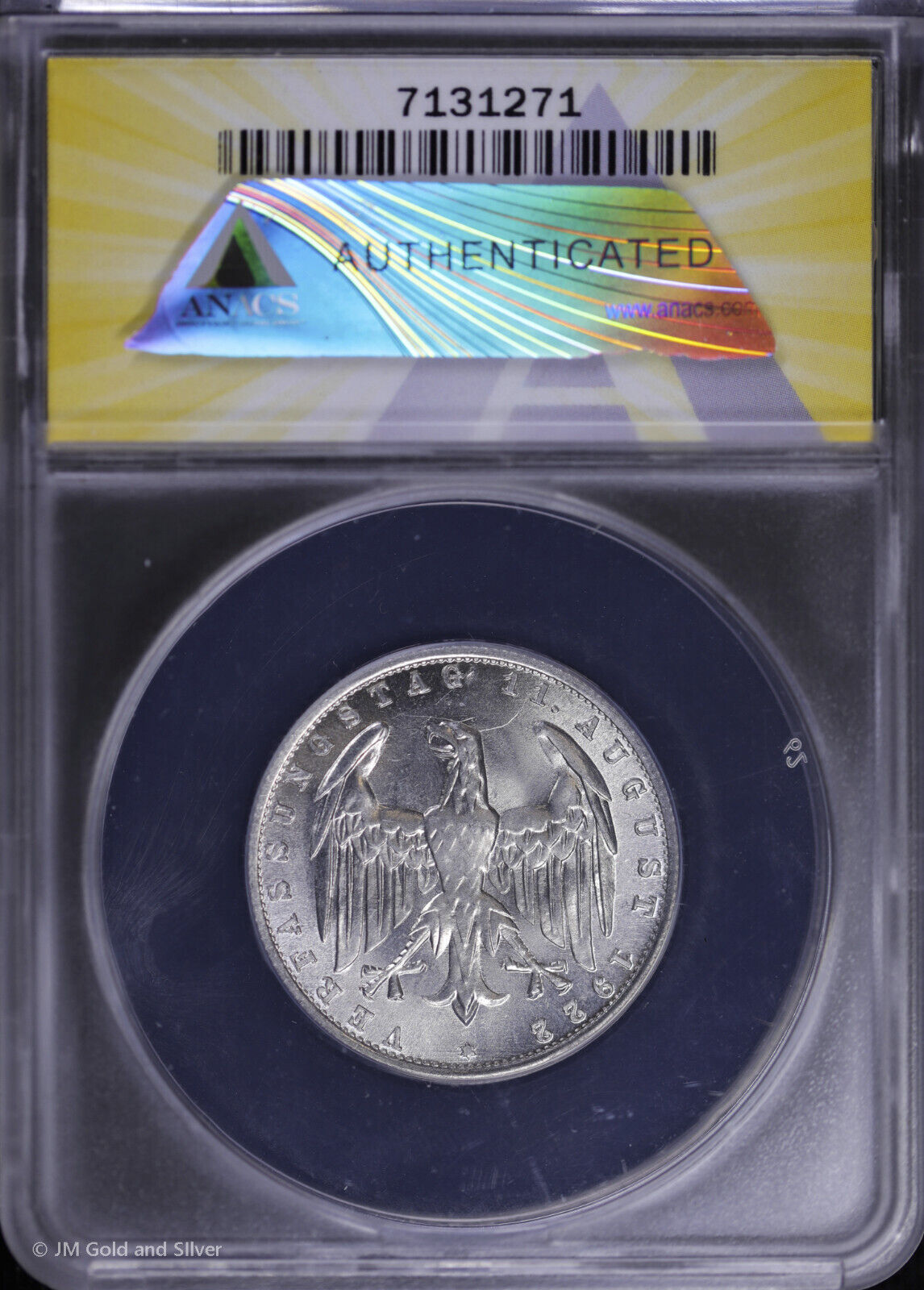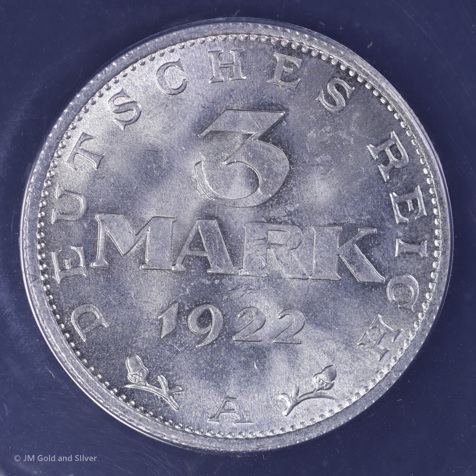 1922 A 3M Germany 3 Marks ANACS MS 64 | Uncirculated UNC BU