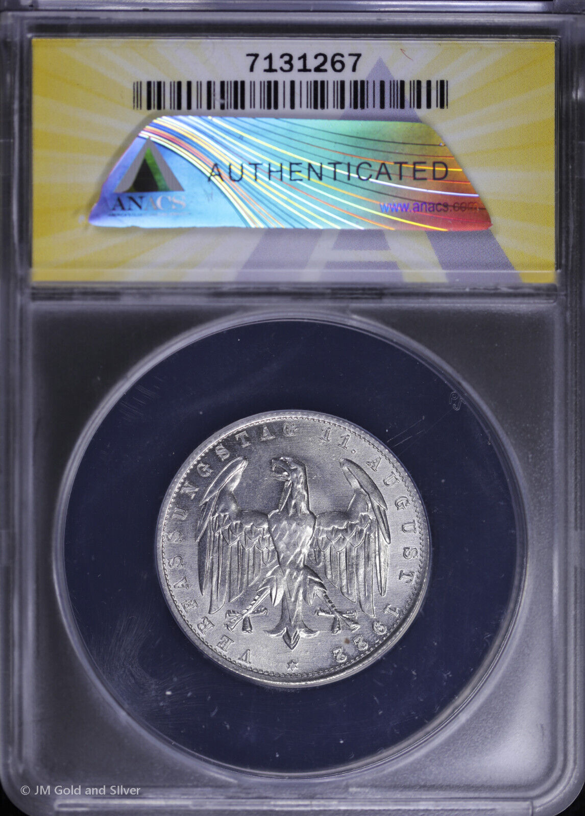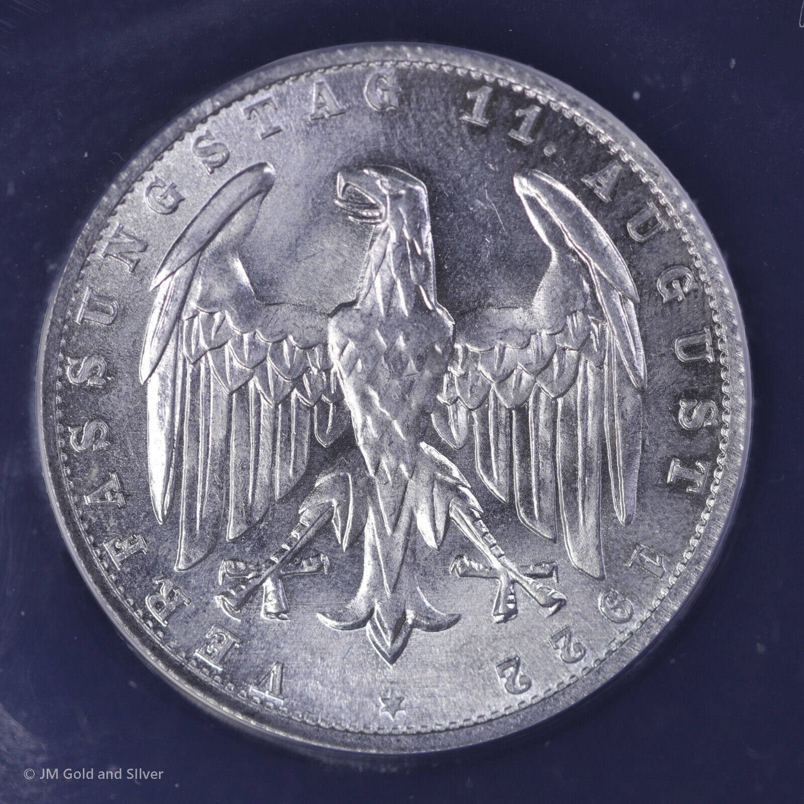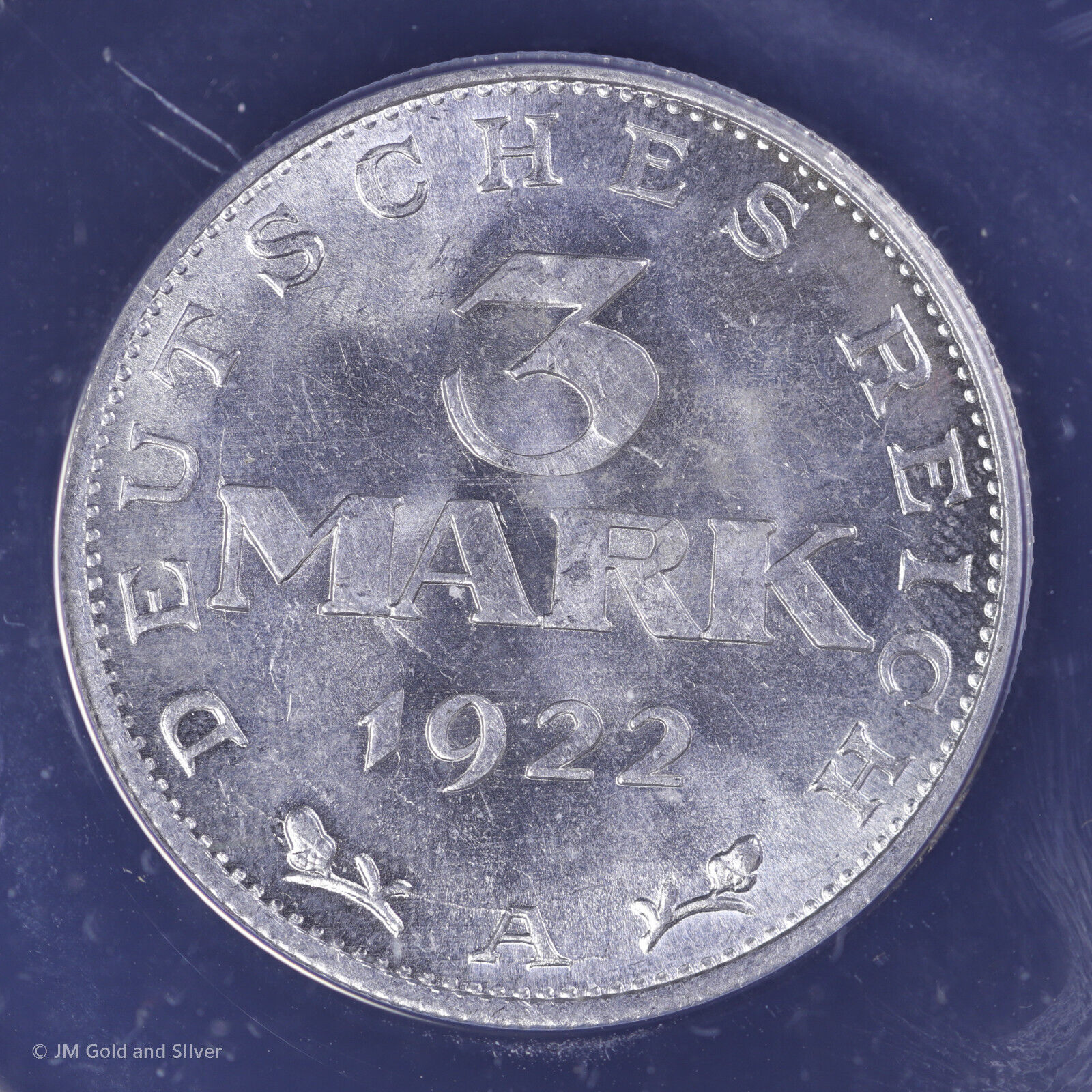 1922 A 3M Germany 3 Marks ANACS MS 64 | Uncirculated UNC BU