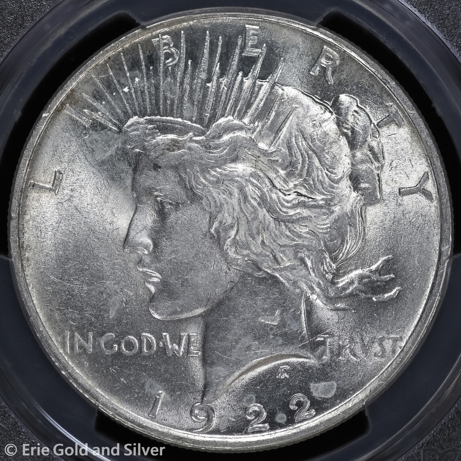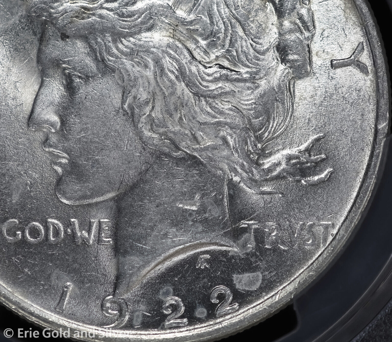 1922-P $1 Peace Silver Dollar PCGS AU 58 | Error: Struck Through Obverse