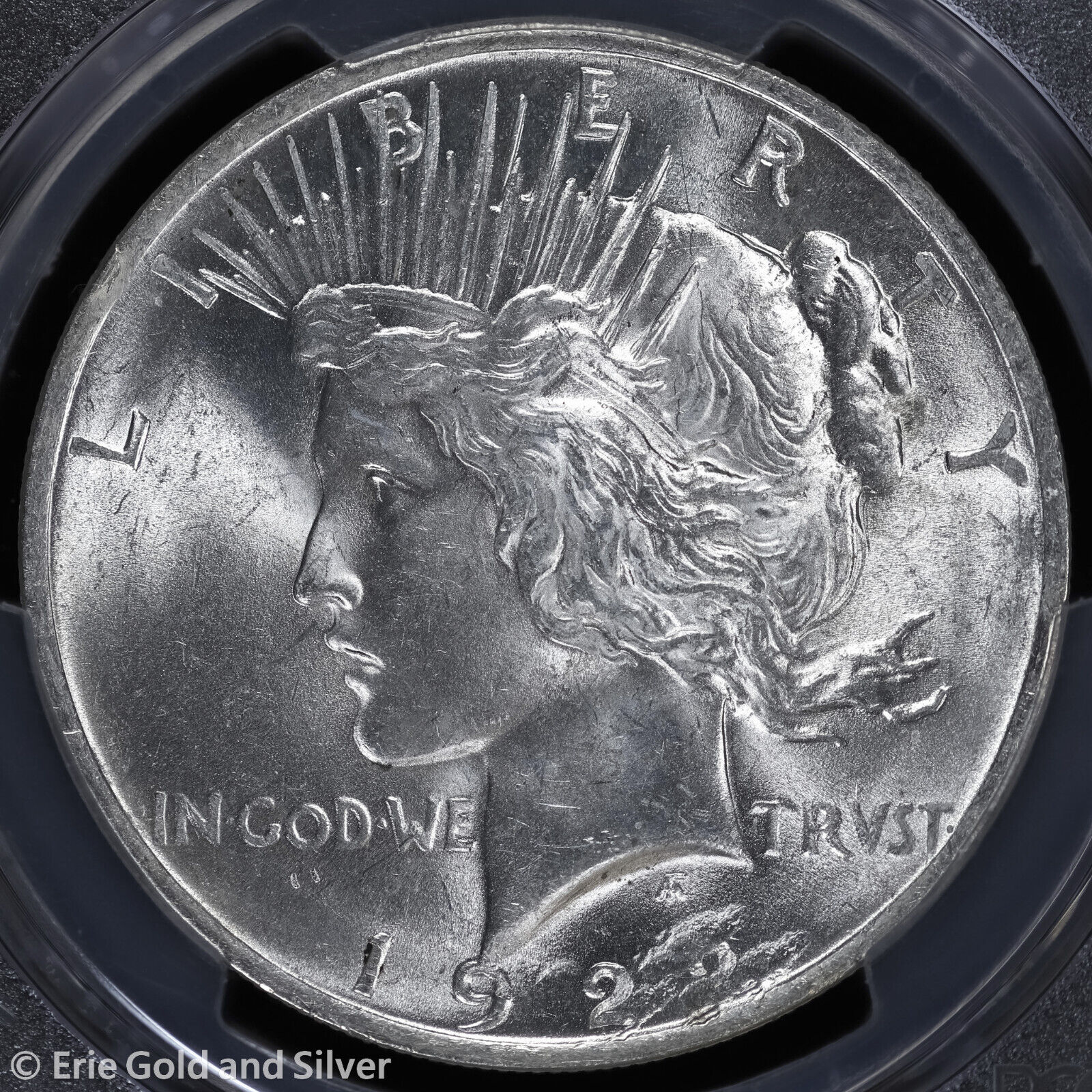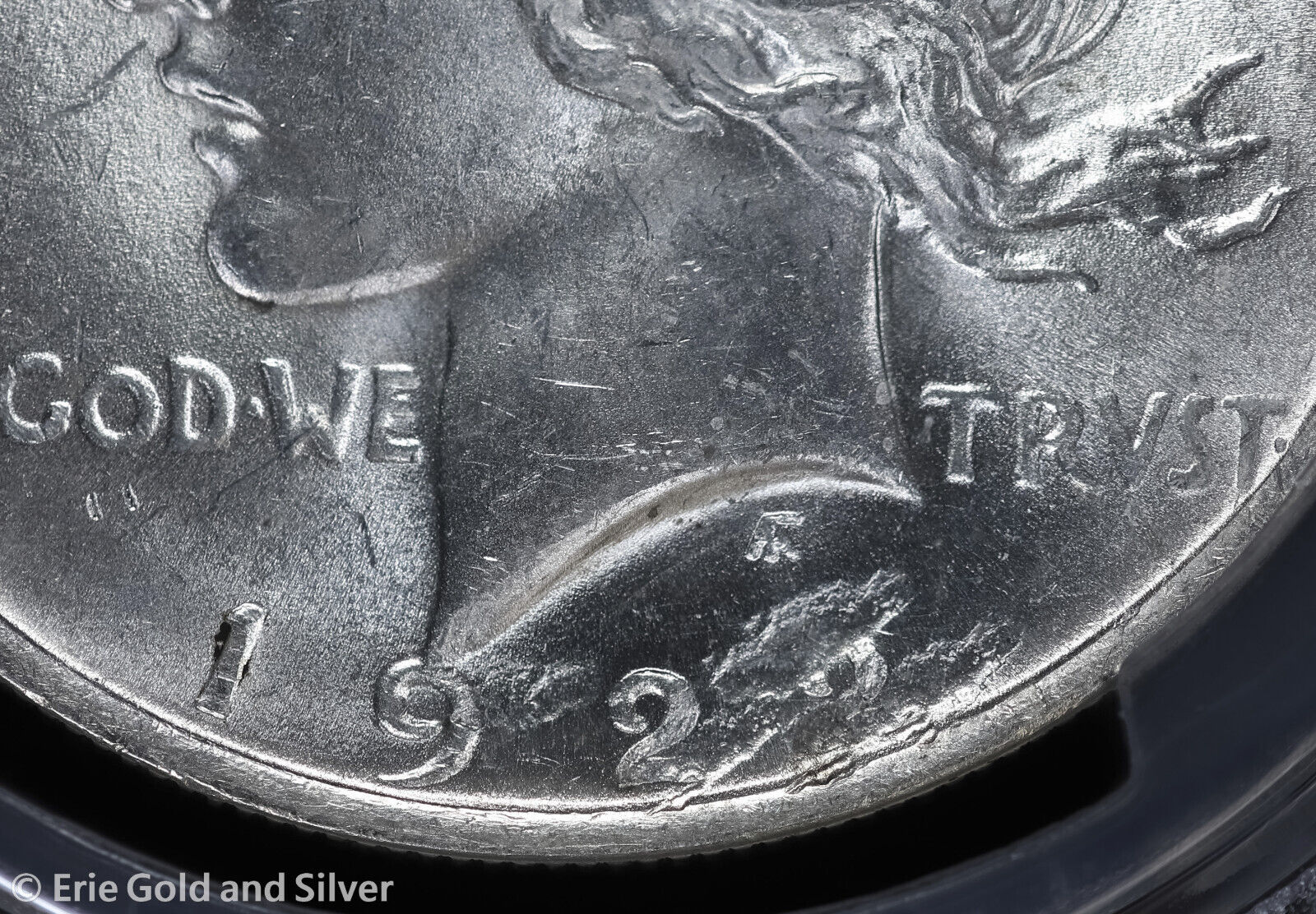 1922-P $1 Peace Silver Dollar PCGS MS 63 | Error: Struck Through Obverse UNC