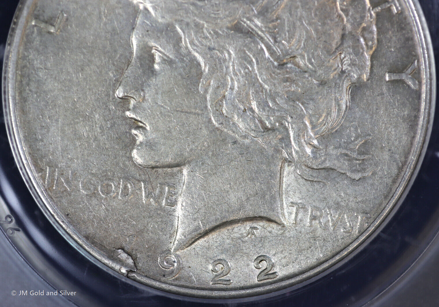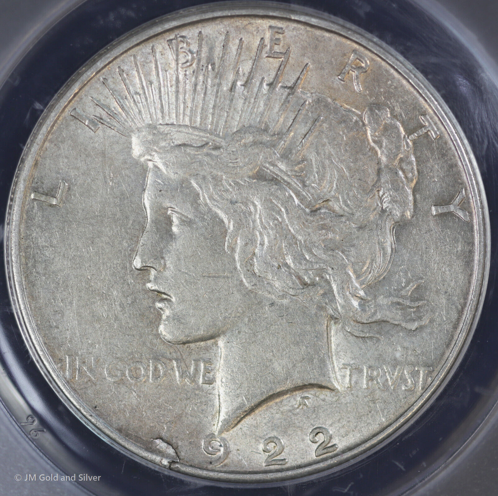 1922-S $1 Peace Silver Dollar ANACS EF 45 | Error Obverse Lamination XF