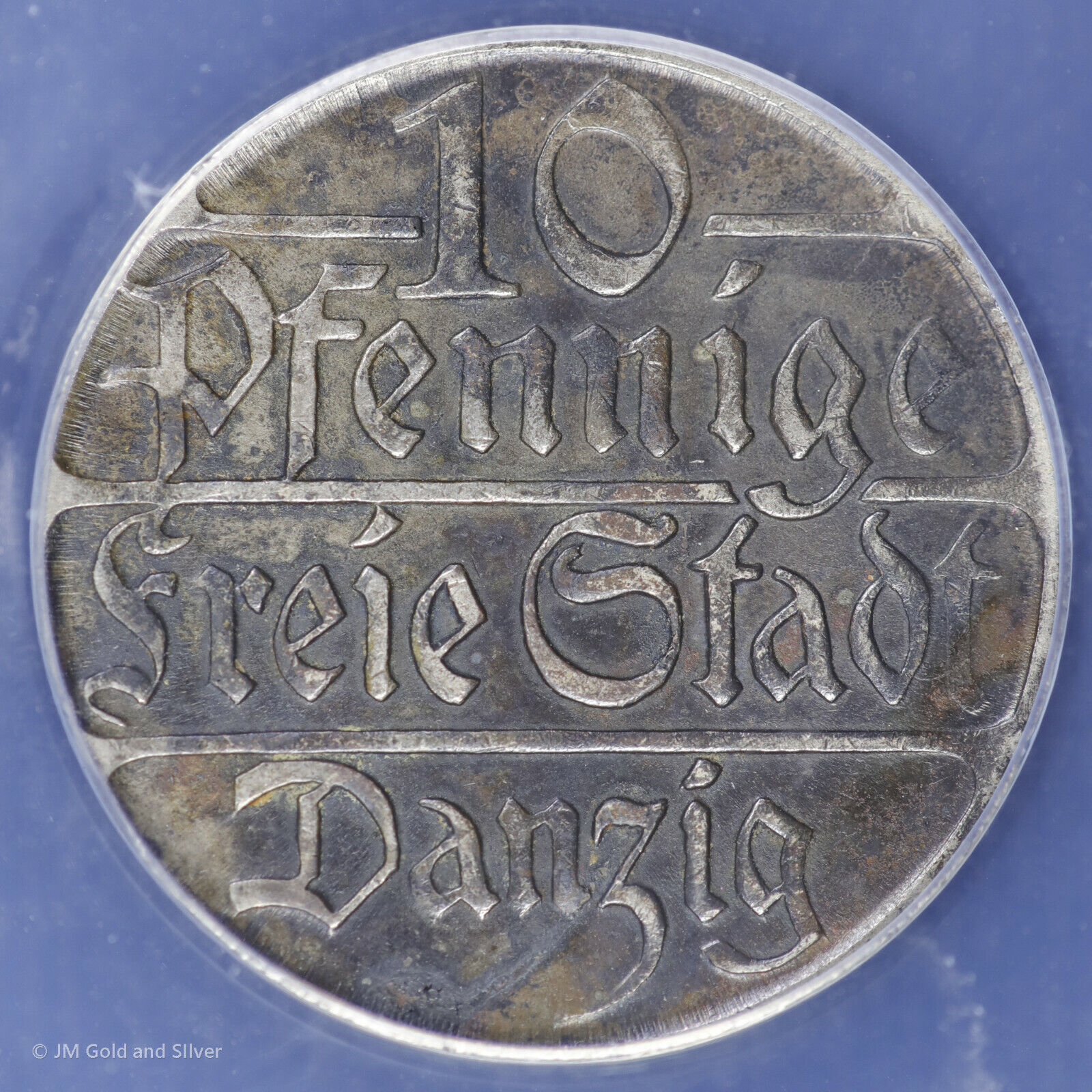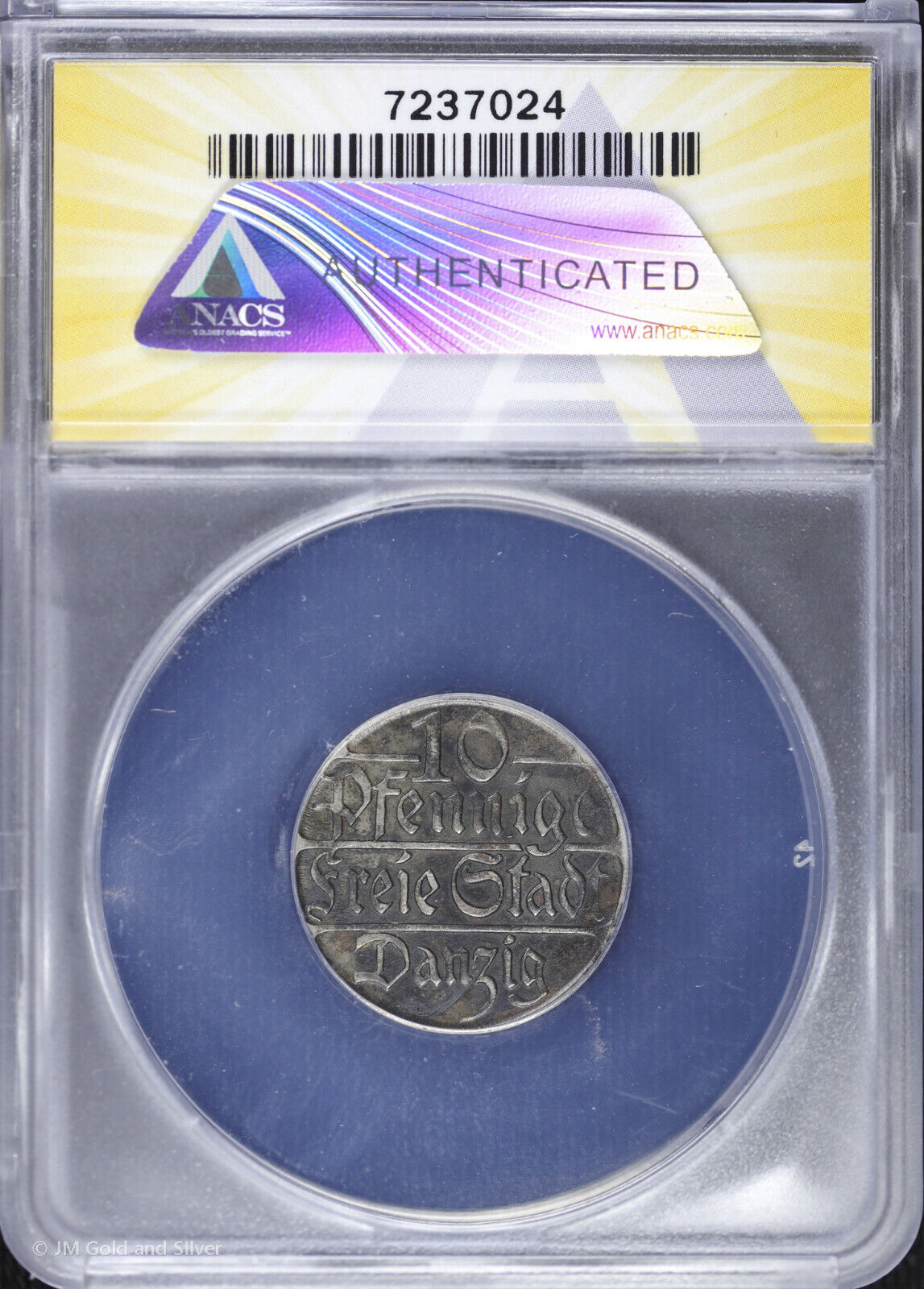 1923 10PF Danzig Free City - Poland 10 Pfennig ANACS EF 45 Details | XF