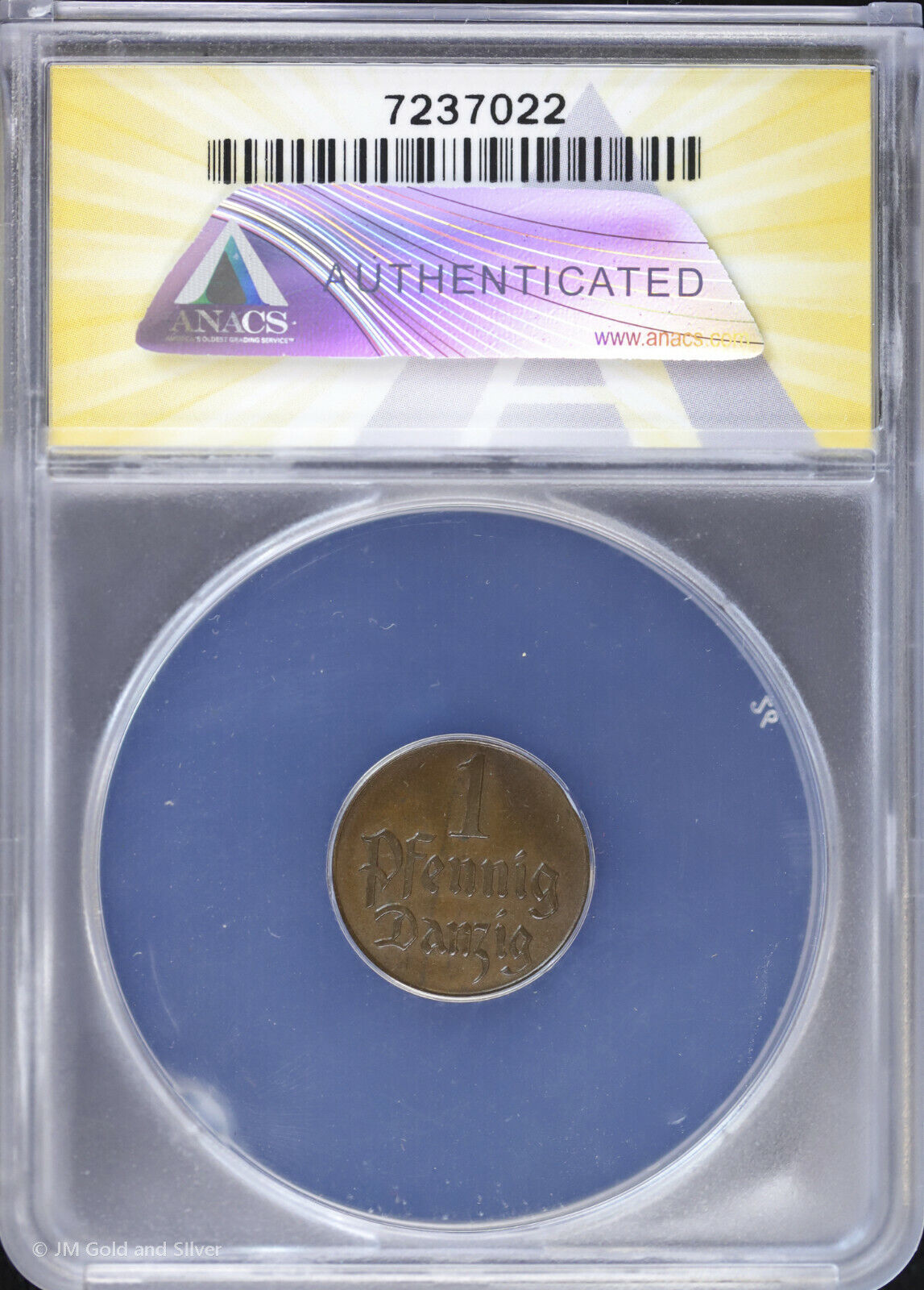 1923 1PF Danzig Free City - Poland 1 Pfennig ANACS AU 55 | Bronze