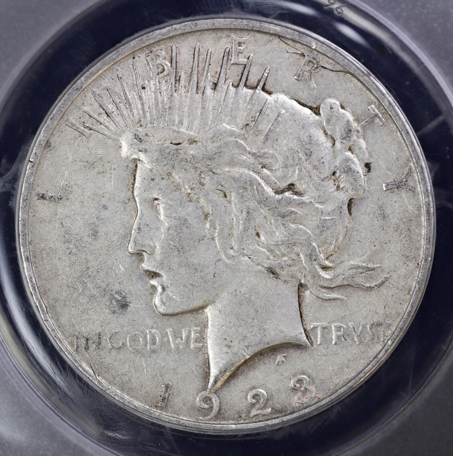 1923-D $1 Peace Silver Dollar ANACS EF 45 | Obverse Die Break XF