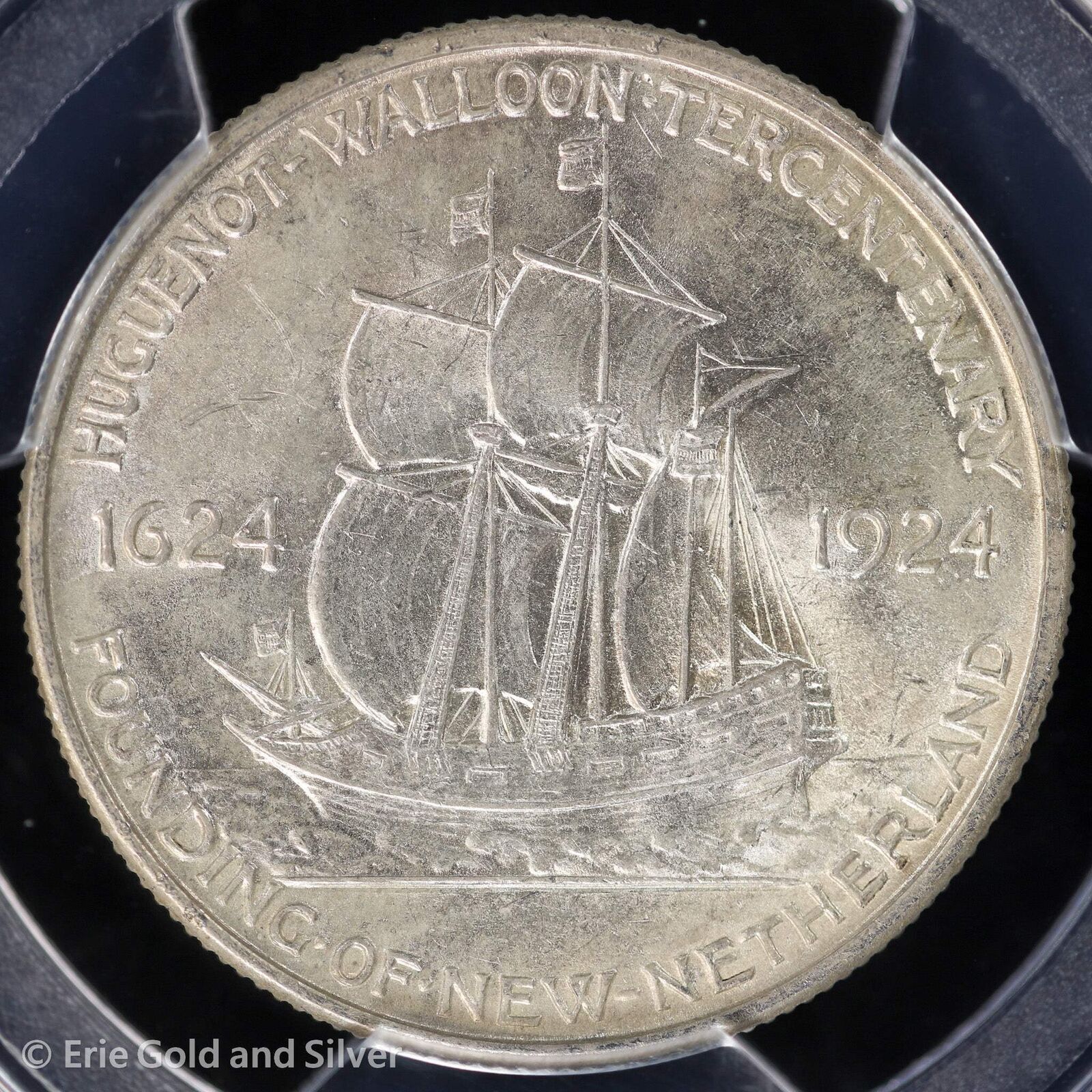 1924 50C Huguenot Commemorative Half Dollar PCGS AU 58