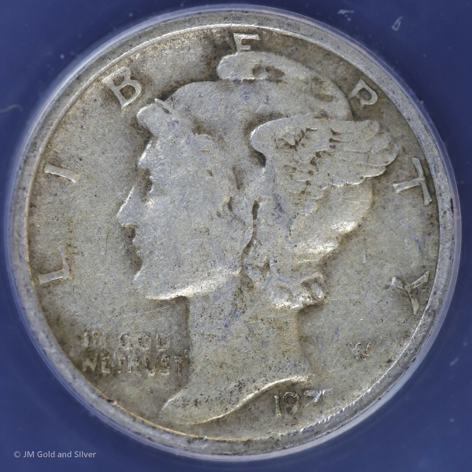 1925 D 10C Mercury Dime ANACS EF 40 | Struck Through Grease XF