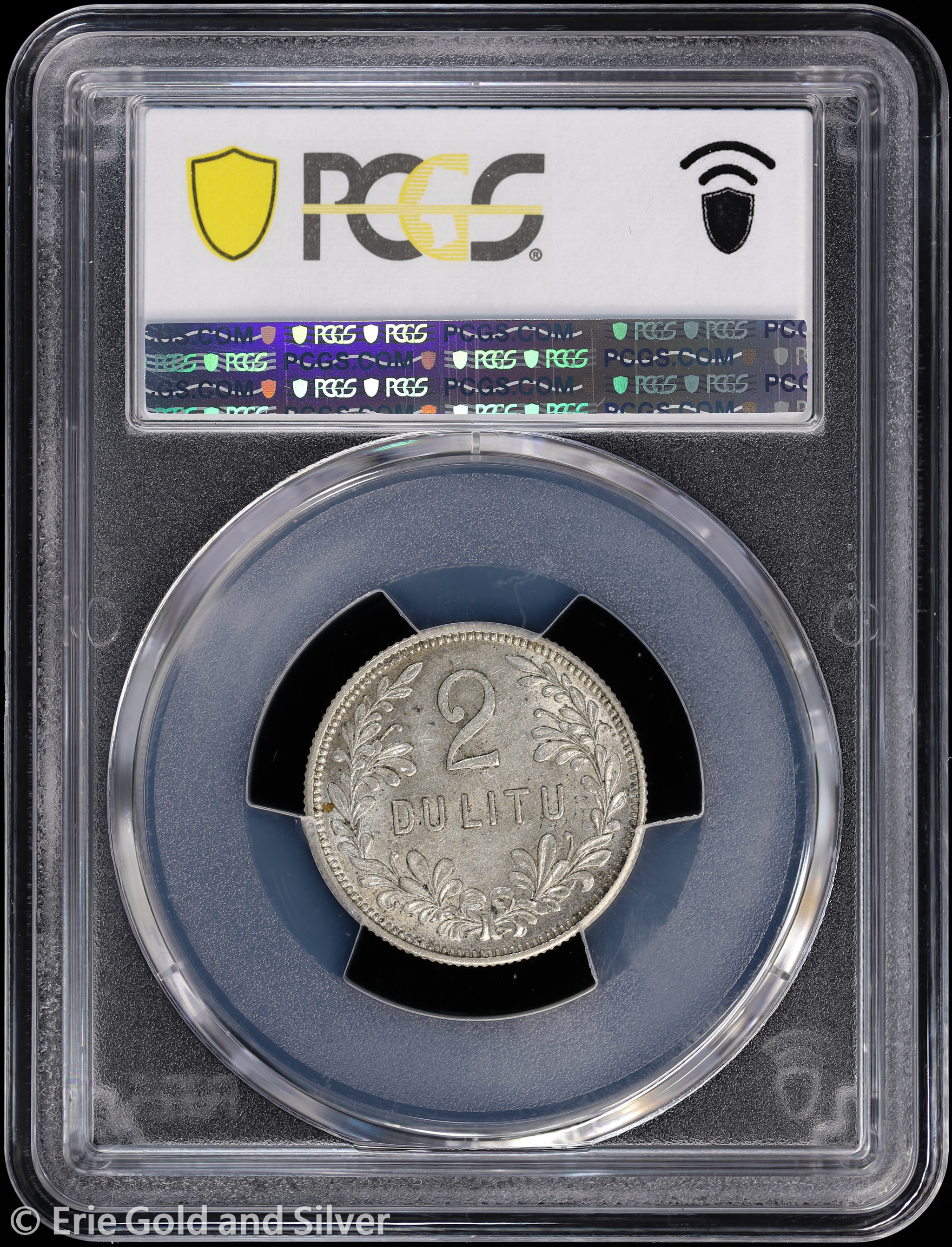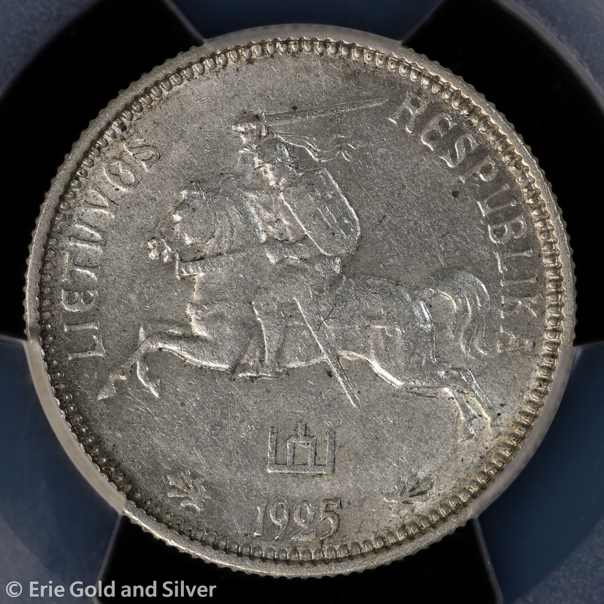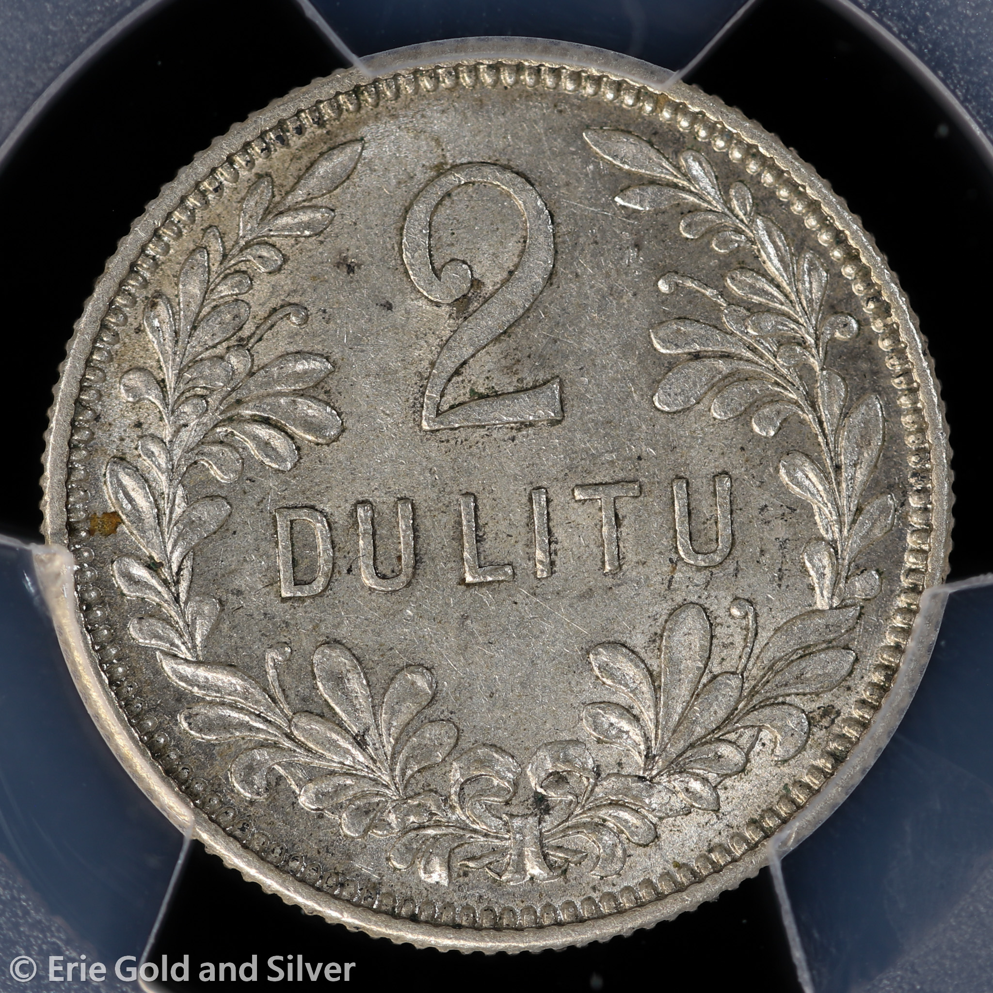 For sale is a 1925 Lithuania Silver 2 Litu. Certified / graded by PCGS at AU 55.