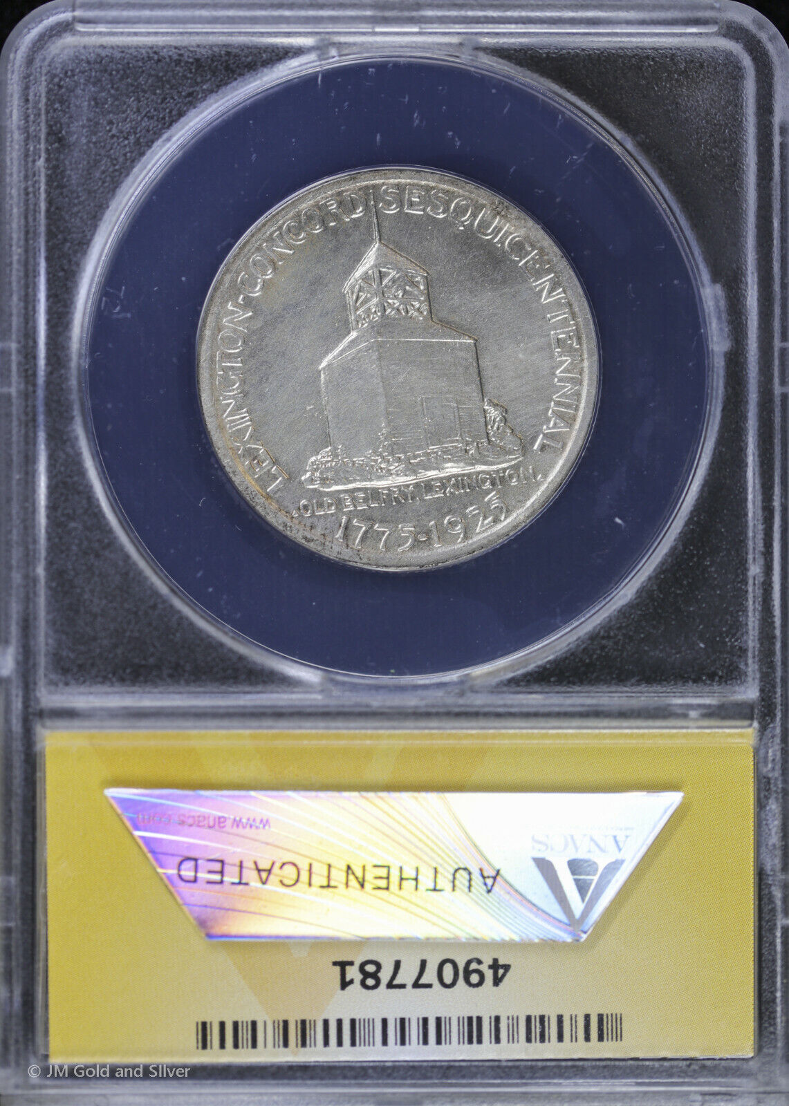 1925 P 50c Lexington-Concord Commemorative Half 1/2 Dollar ANACS MS 61 | UNC
