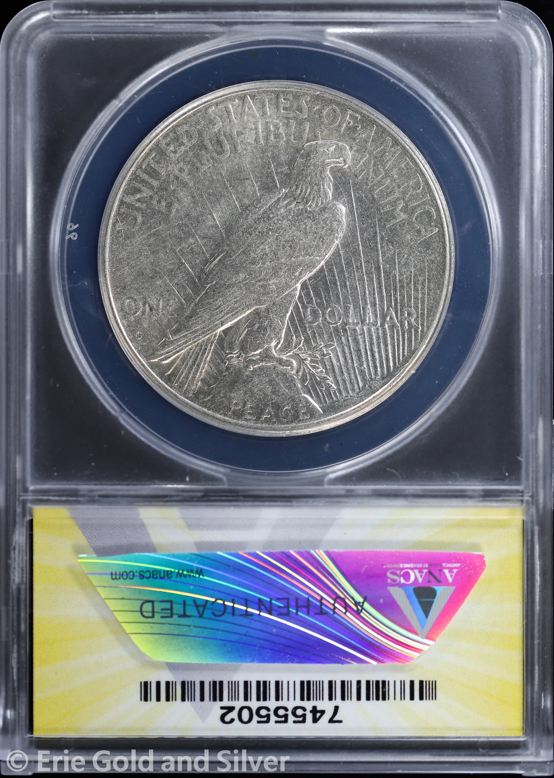 1925-S $1 Peace Silver Dollar ANACS AU 55