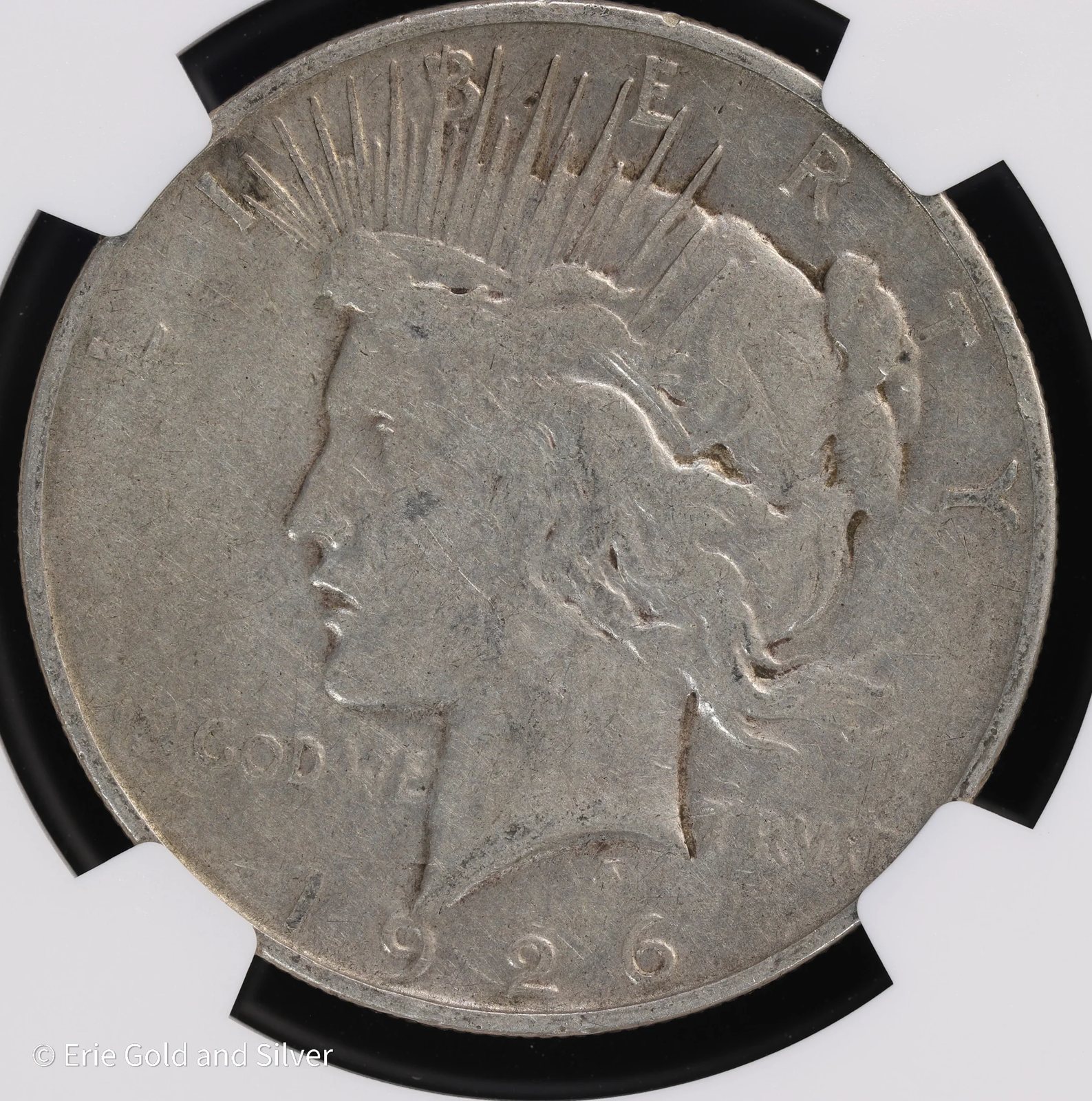 1926-D $1 Peace Silver Dollar NGC VF 30 | Mint Error Reverse Lamination