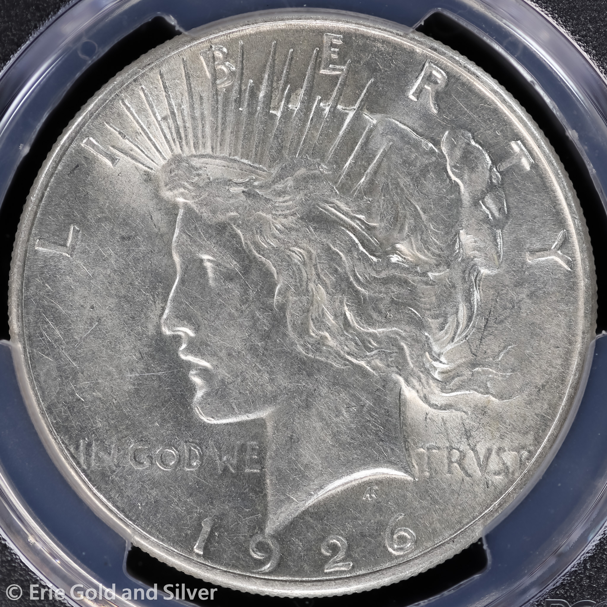 For sale is a 1926-S Peace Silver Dollar. Certified / graded by PCGS at AU 50.