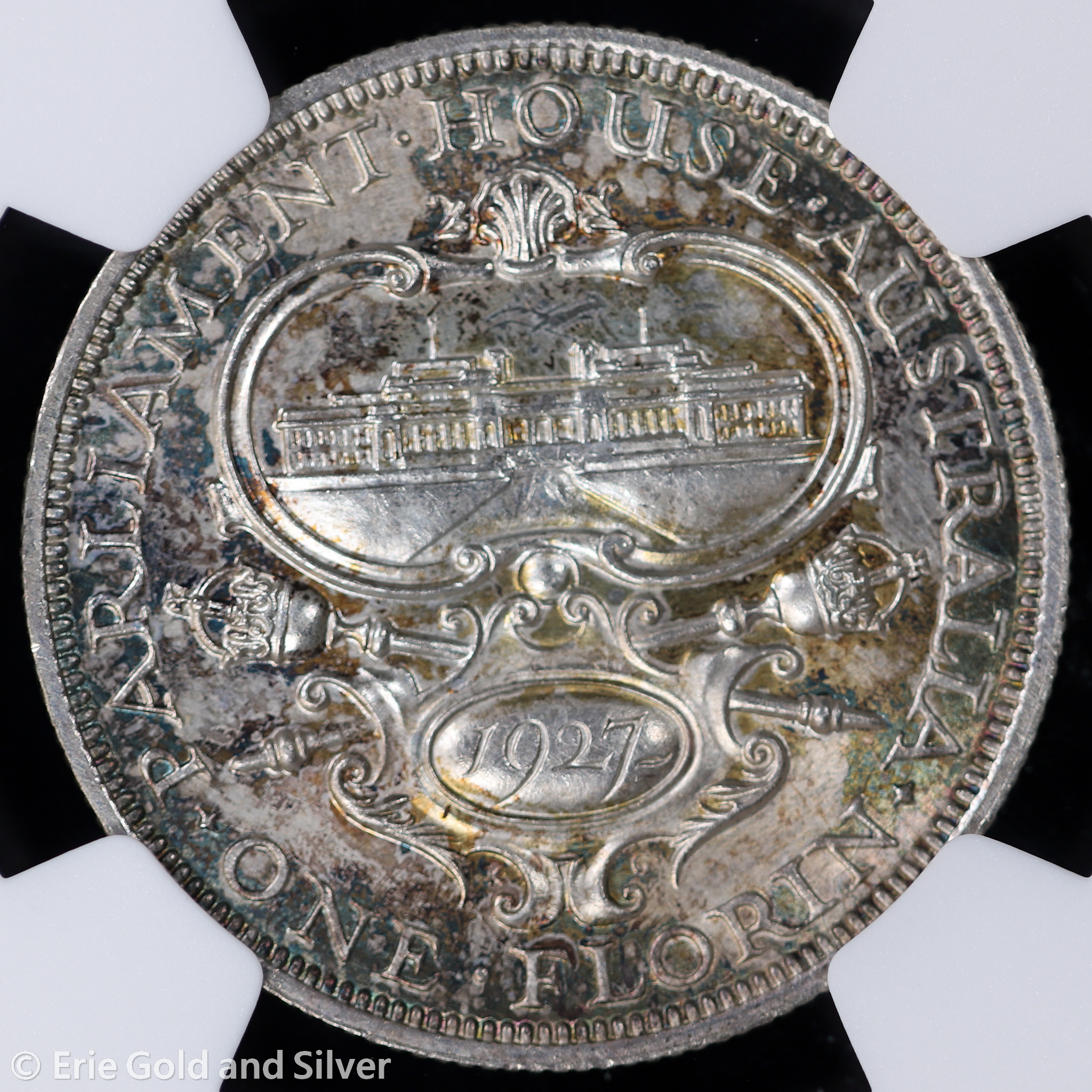 1927 2S Australia Parliament House Silver Florin NGC AU 58