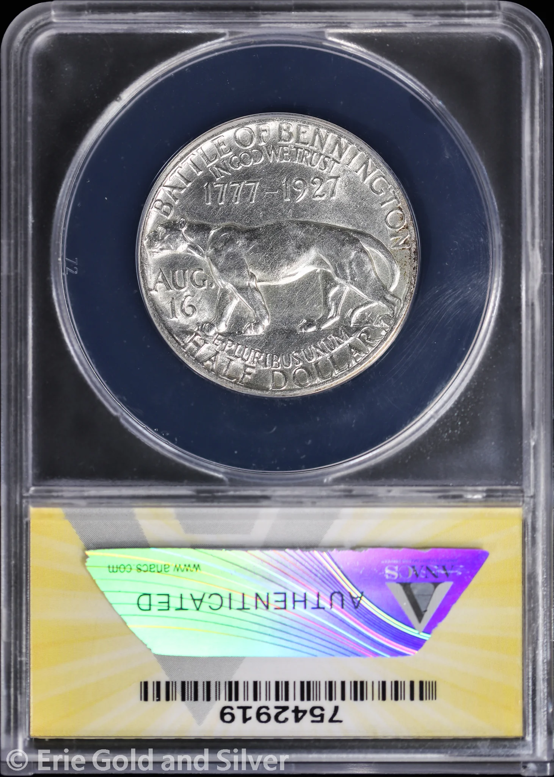 1927 50C Vermont Half Dollar ANACS AU 58 Details