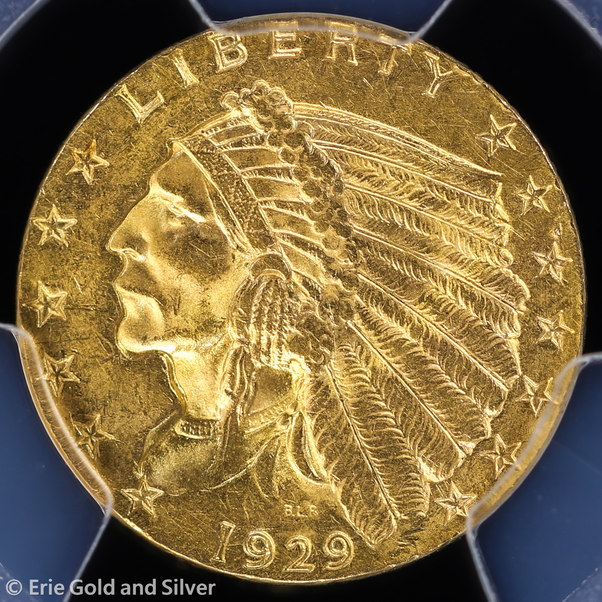For sale is a 1929 $2.50 Gold Indian Head Quarter Eagle. Certified / graded by PCGS at Genuine UNC Detail. View pictures for details and condition. The item pictured is the exact item you will receive. Feel free to contact us with any questions.