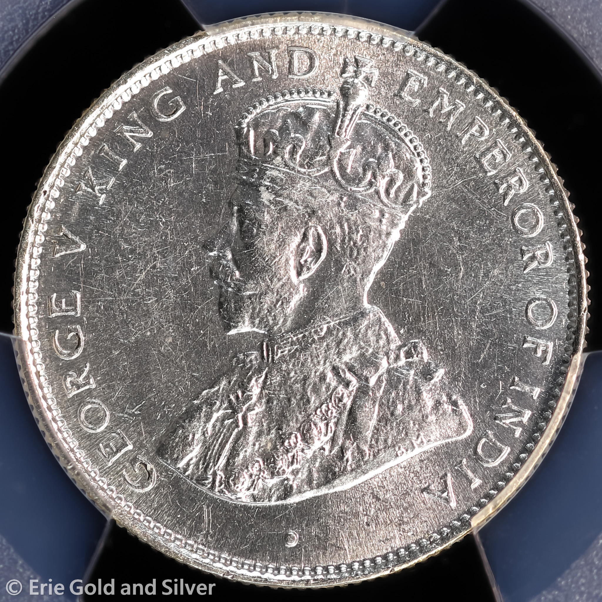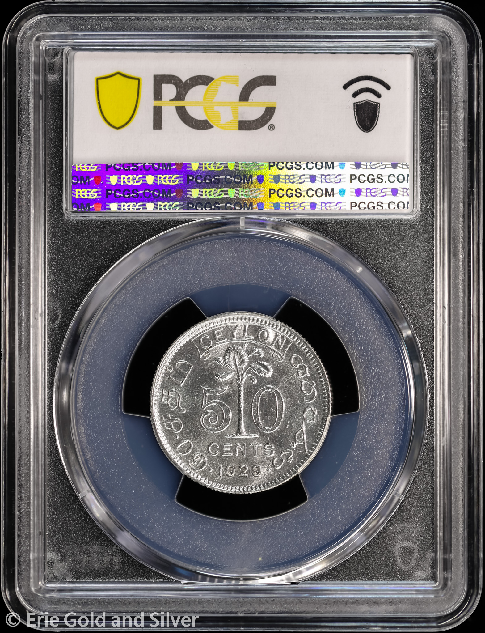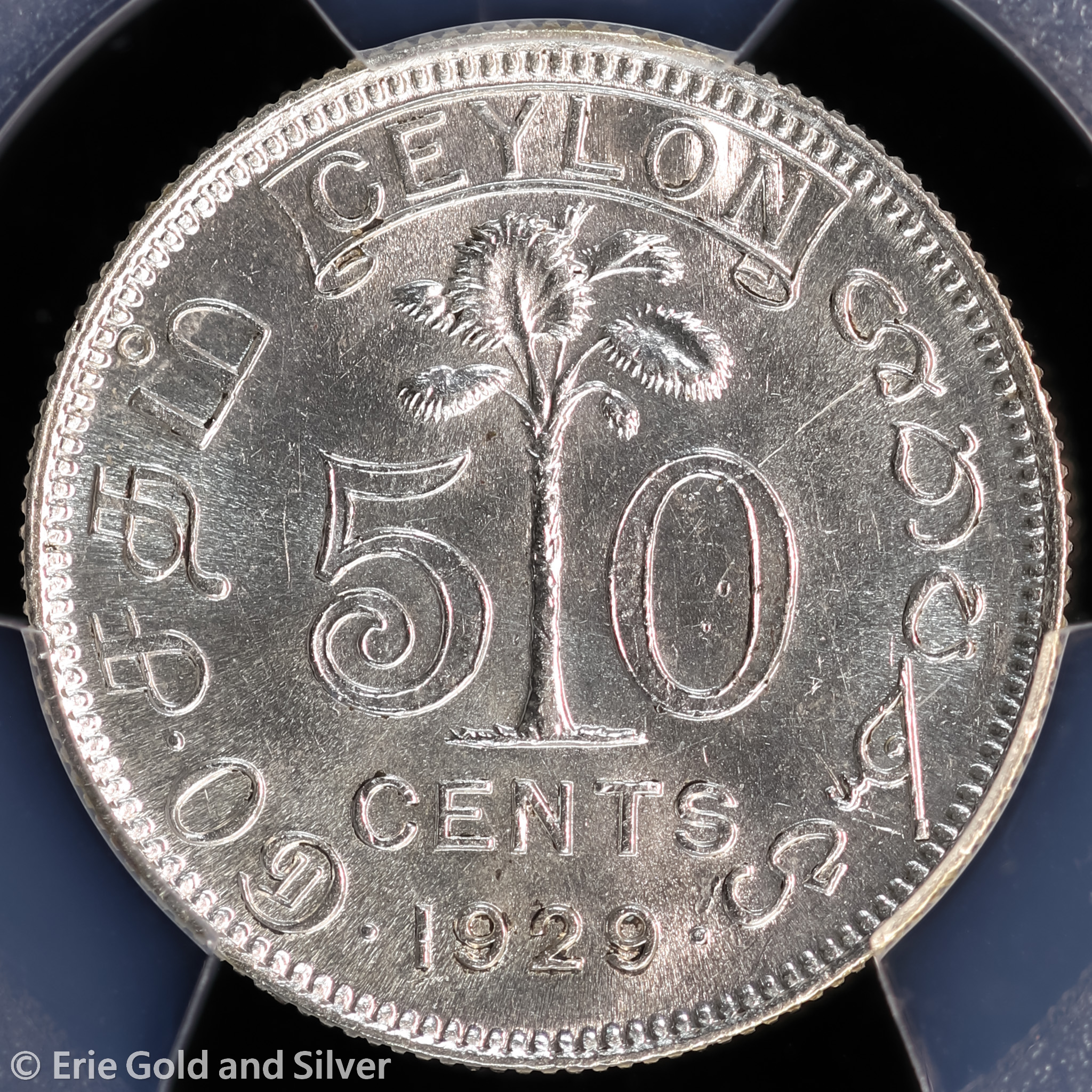 For sale is a 1929 Ceylon (Sri Lanka) George V 50 Cent Coin. Certified / graded by PCGS at AU 58.