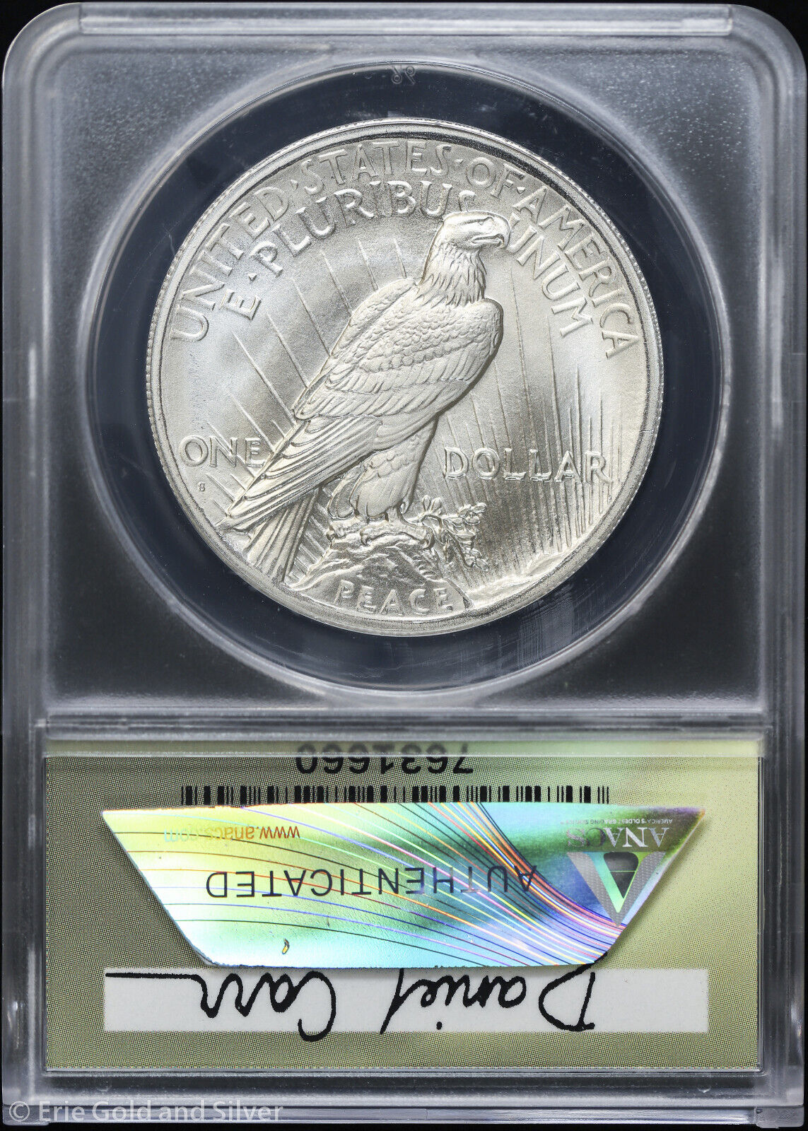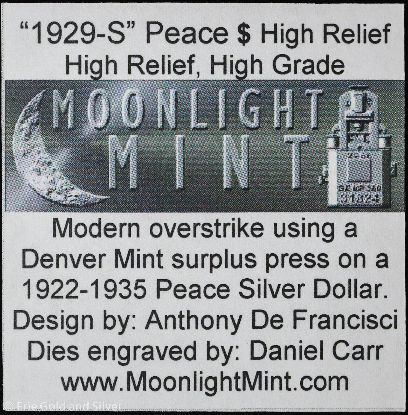 1929-S Dan Carr High Relief Peace Dollar Overstrike Token ANACS MS 70 | w/ COA