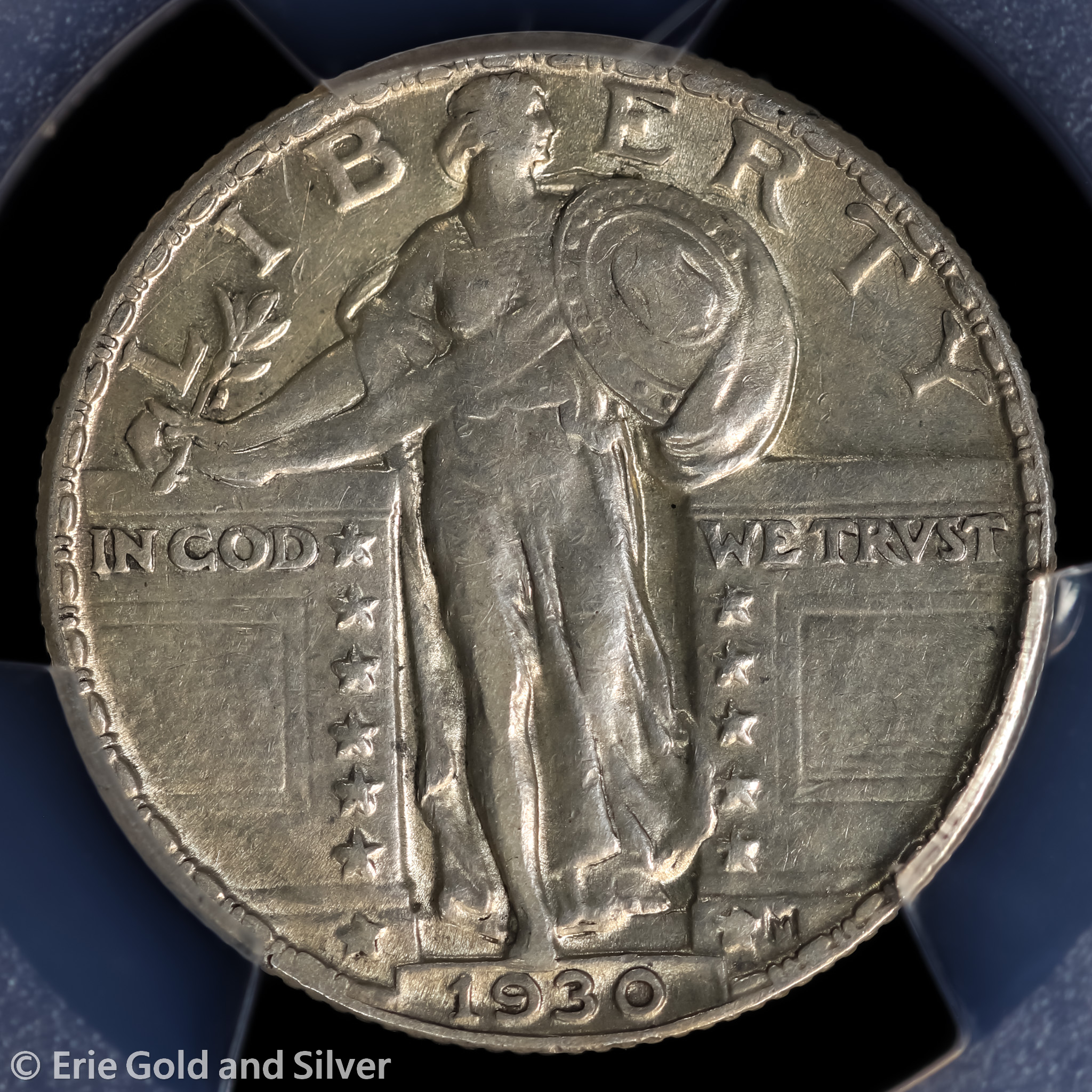 For sale is a 1930 Standing Liberty Quarter. Certified / graded by PCGS at Genuine AU Detail.