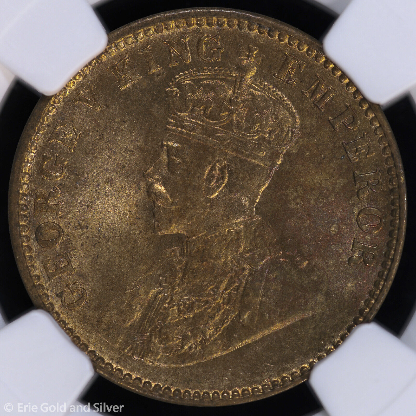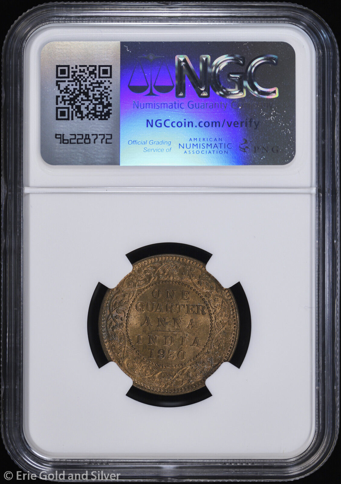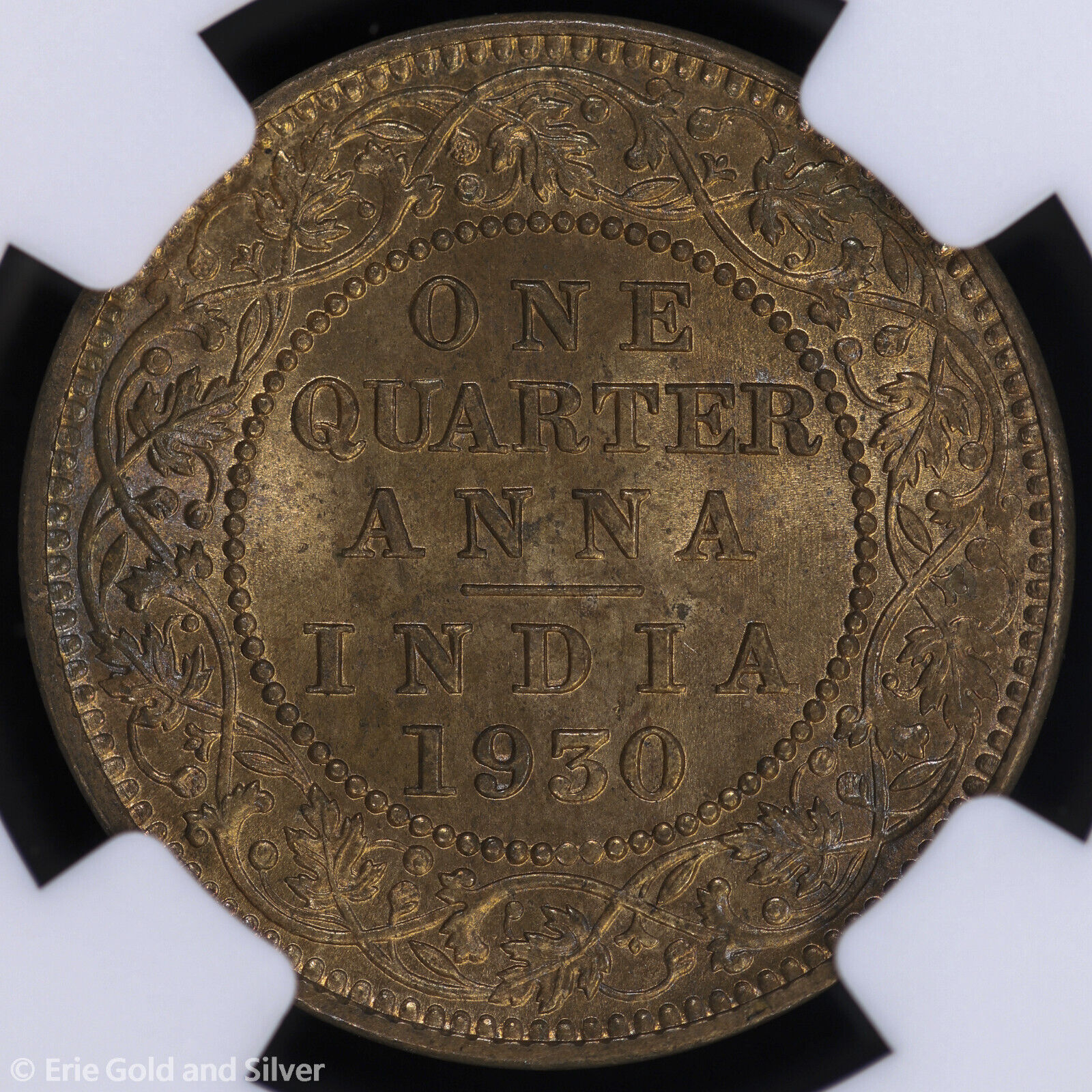 1930-(C) India 1/4 Anna NGC MS 65 RB | Toned Uncirculated UNC BU