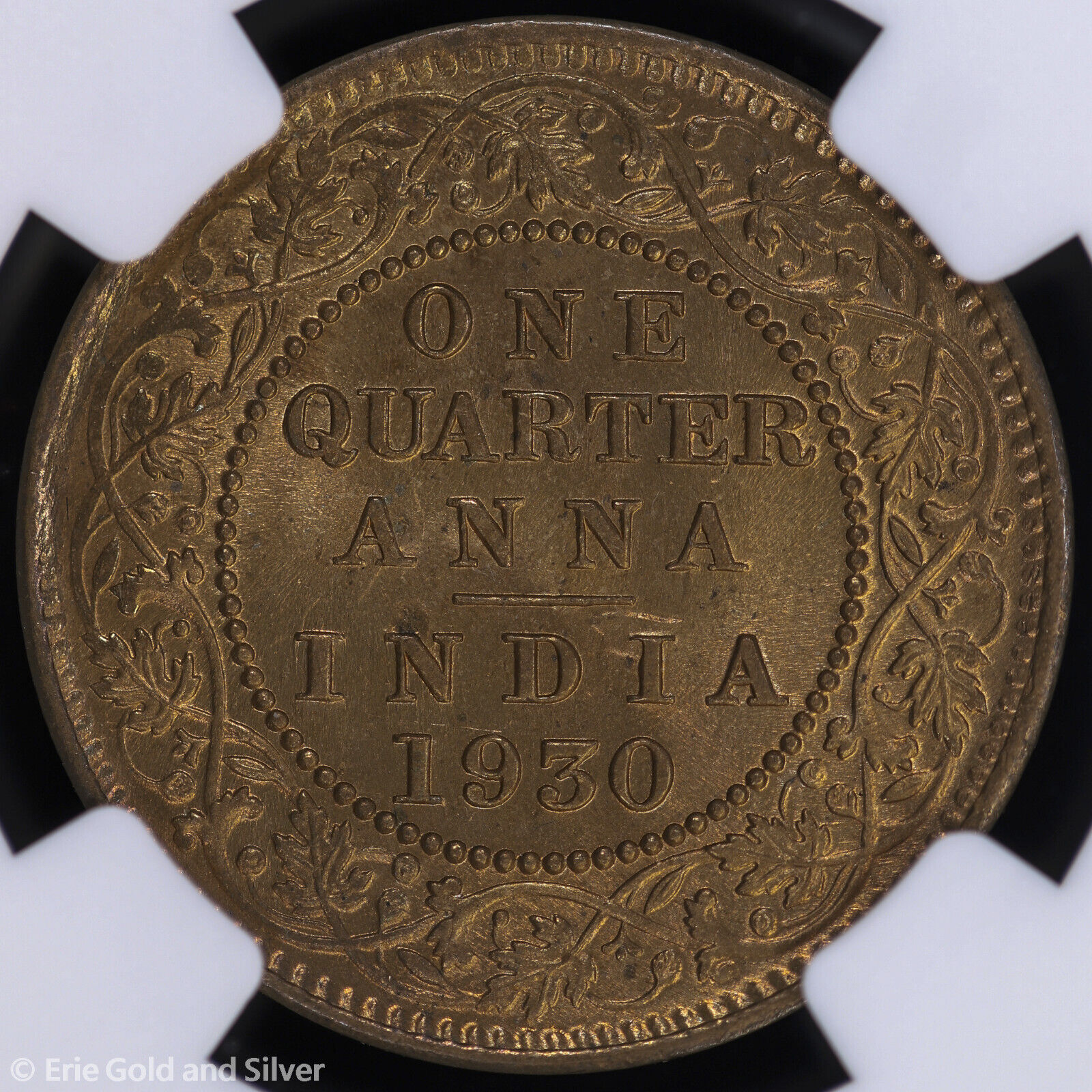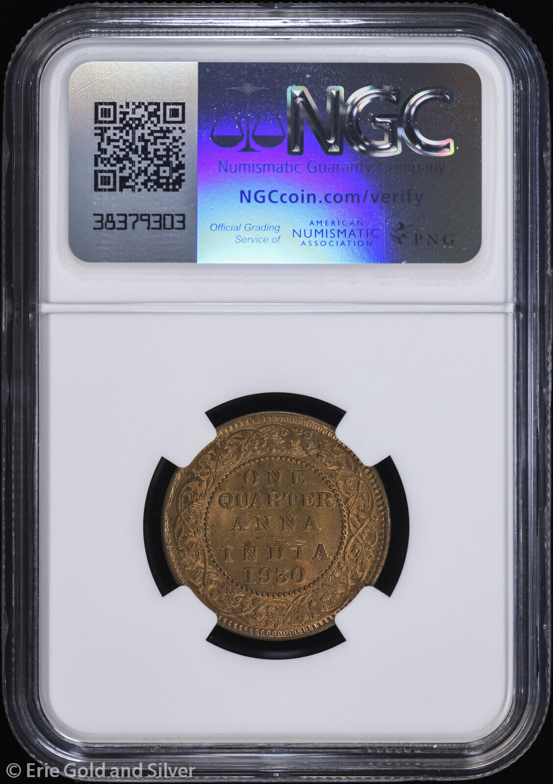 1930-(C) India 1/4 Anna NGC MS 66 RB | Uncirculated UNC BU