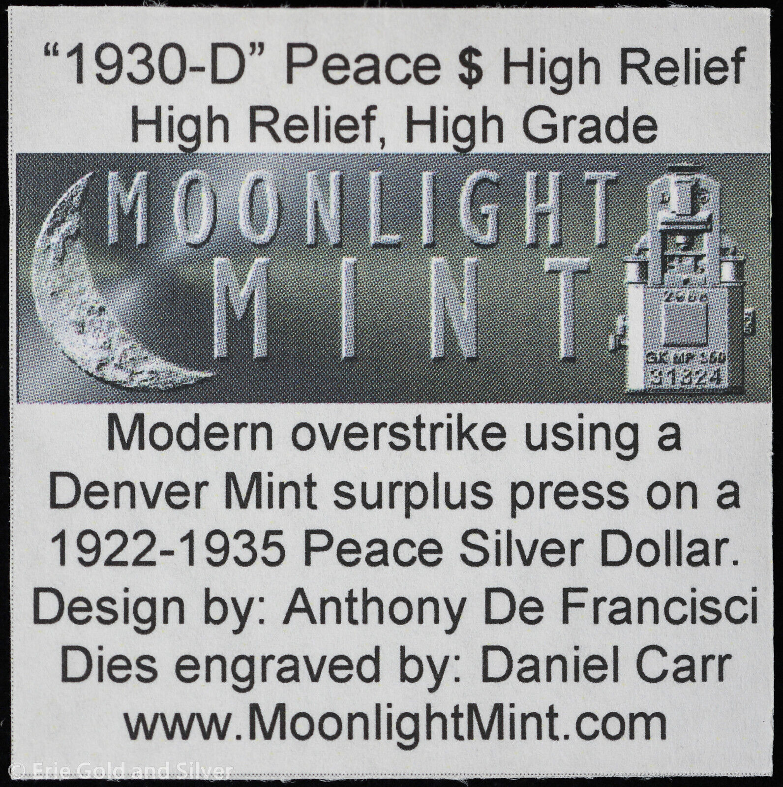 1930-D Dan Carr High Relief Peace Dollar Overstrike Token ANACS MS 70 | w/ COA