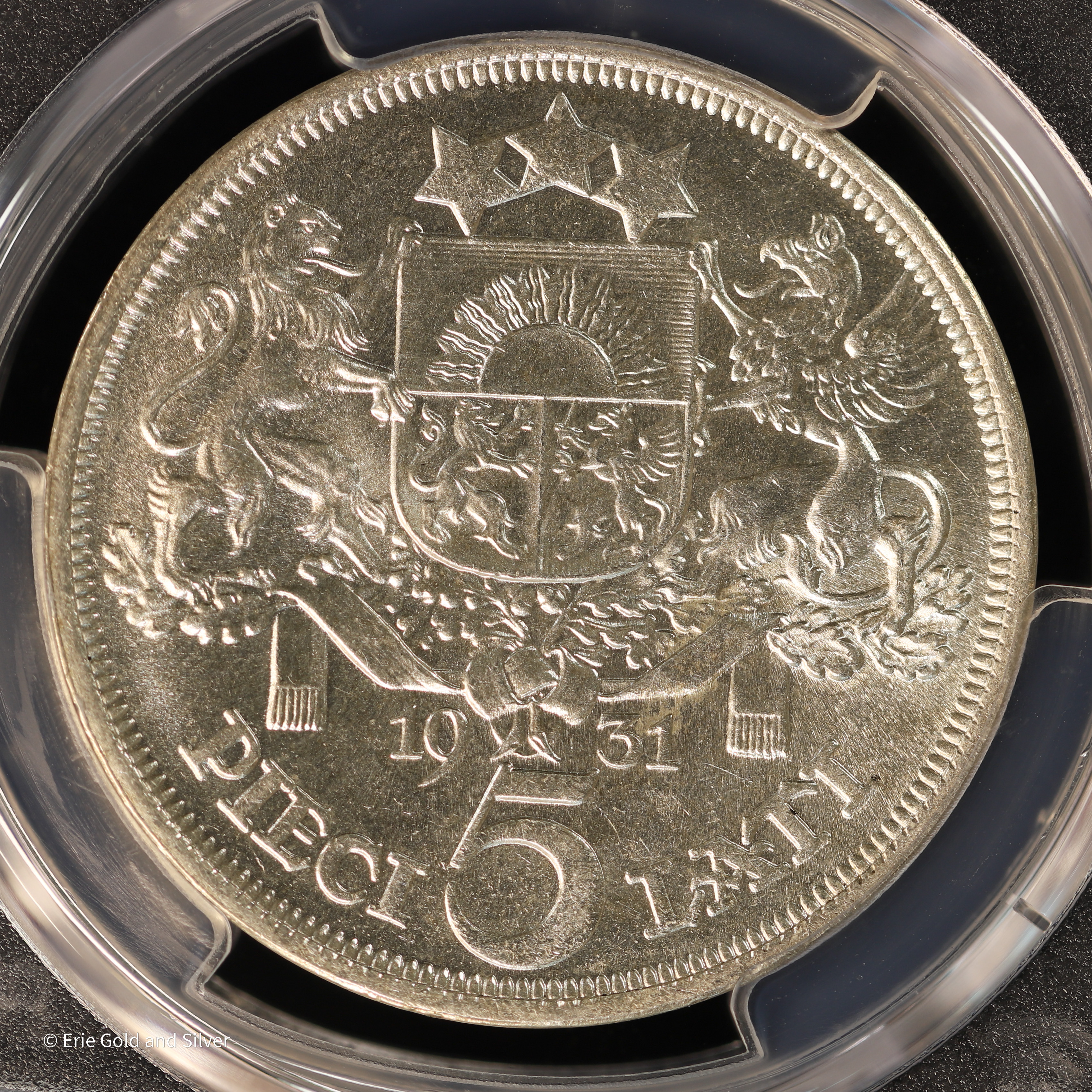1931 5L Latvia 5 Lati PCGS MS63 | Silver